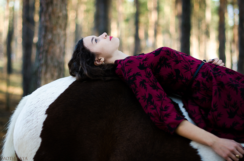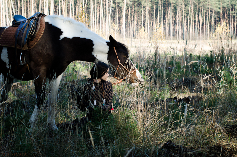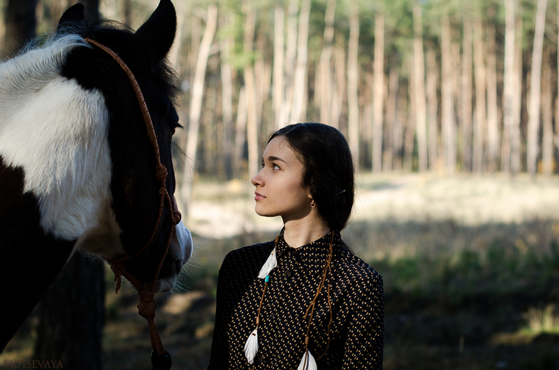 На всех фотографиях происходит.... ничего. Ходят они вдвоем, девочка позирует сама по себе и периодически не знает чем заняться, а лошадь стоит. Скучная, в общем, история получается. А на 26 вообще откуда не возьмись собака)