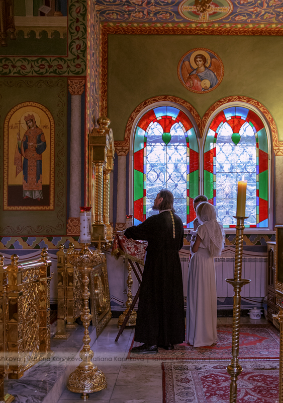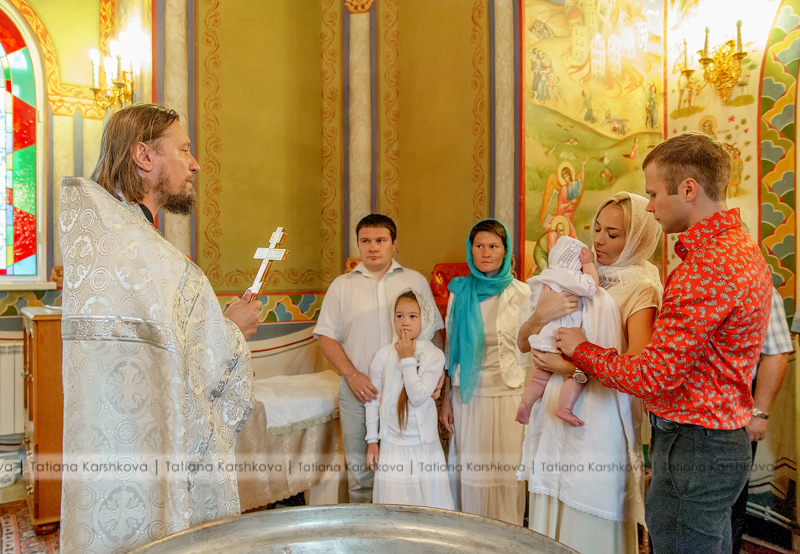В одном их Храмов Донского монастыря. Первый раз снимала крещение длинною в 15 мин. Это было ужасно, все быстро, в спешке. Даже свечи в момент хода купели не зажгли.