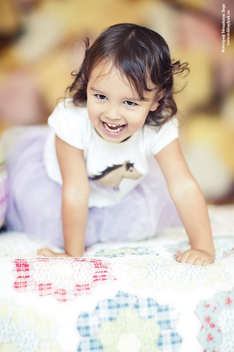 А можно вопрос: в какое время съемку делали? На кровати - свет только от окна? Как Вам там освещение показалось? Я в "детях" сделала несколько съемок (первый раз в студии снимала), и, как мне кажется - не вытянула технически:( (Фотографии у меня получились темноватыми, и вообще на студийные не похожи))) А вот с "сеновалом" все как раз окей...