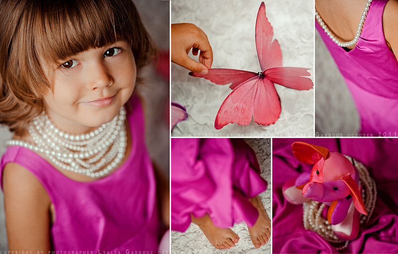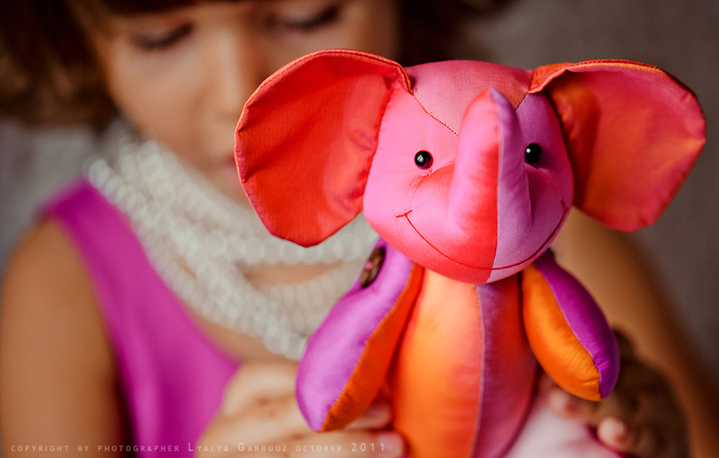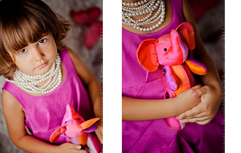 Я купила его в Тайланде прошлой осенью. Когда увидела его в магазине, влюбилась, и не смогла удержаться от покупки. А потом не смогла остановиться и купила еще трех. По одному для каждого члена нашей семьи. Слоненок выполнен из натурального шелка, на ножках стилизованные пуговки. И потрясающее сочетание цветов - фуксия, розовый, сиреневый и ораньжевый. Мне очень хотелось использовать его в съемке. На первый мастер-класс в "Савое" я забыла его взять. На второй мастер-класс в том же "Савое" я взяла его, но забыла достать из чемодана). Он был и на съемке "Львы и Тигры"), я даже сфотографировала его, но в результате в окончательную версию он не вошел. Мне хватило тигрят). Тогда я подумала, что слоненок явно набивается на собственную историю))). И пошла выбирать платье для дочки. Купила его в Монсуне, в то время у них была совершенно потрясающая витрина с бабочками - розовыми и фиолетовыми. Расплачиваясь на кассе, я не удержалась и поинтересовалась у продавщиц, что будет с этими бабочками, после того, как их снимут. Мне ответили, что они отправятся в мусорку, если кто-нибудь не заберет их домой. Тогда я спросила, а можно я буду этим кем-то))). Мне из подсобки вынесли новенький дополнительный комплект бабочек. Я только что не прыгала от счастья))))). Вот так сложилась эта съемка. Именно тогда, когда пришло ее время. Эти бабочки я сохранила, они еще будут участвовать в съемке на мастер-классе "Английские розы". Может и слоник будет там). Все фотоматериалы опубликованные на сайте имеют своего автора. Использование фотографий без разрешения автора запрещено.