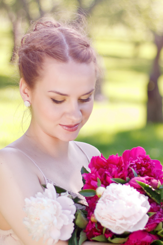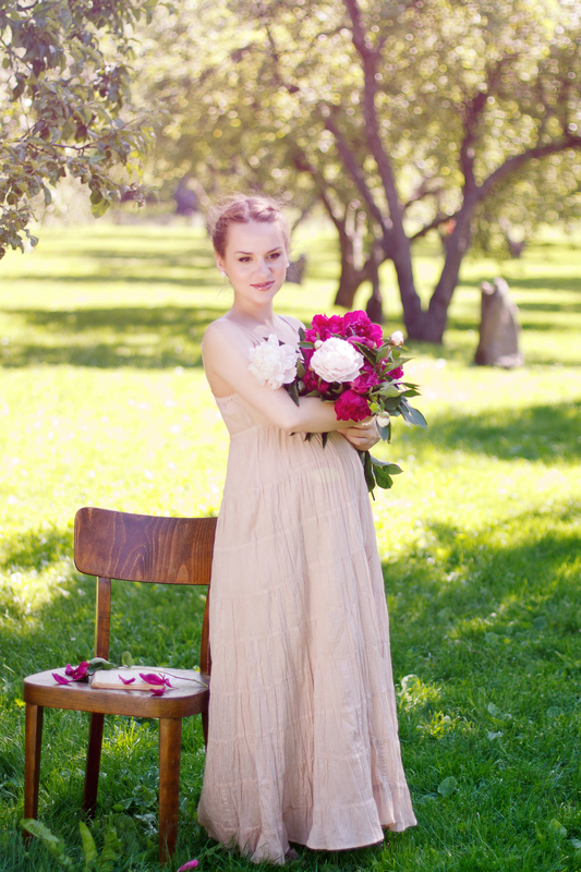 (и думаю...) а зачем девушке в яблоневом саду... пионы?