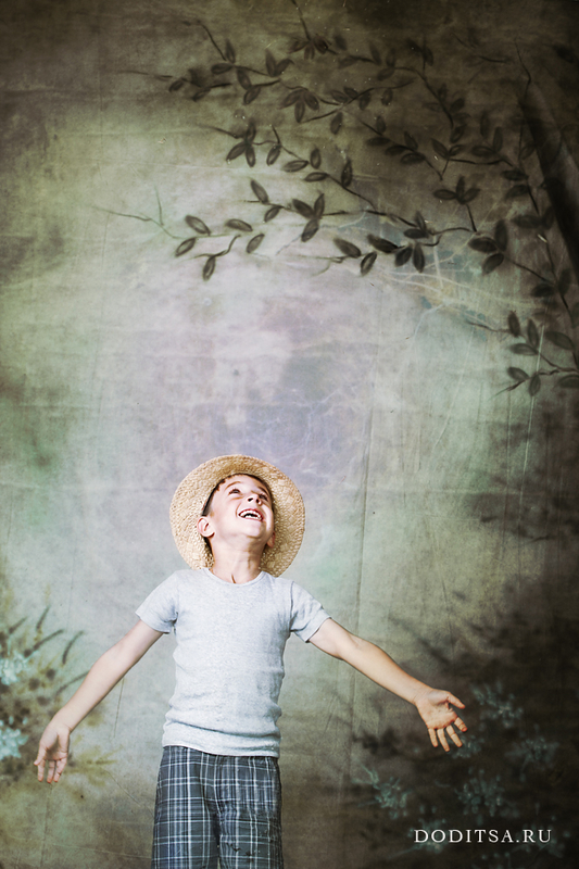 И ещё очень много зависит от того, как хорошо сможешь натянуть фон и под каким углом будешь ставить свет. Здесь на картинках банер на стену цеплялся вроде весь, т.е. волн и подобного не было и это определенно плюс. Но я в основном для садов печатаю, поэтому вешаю на стойку-ворота и не всегда выходит идеально ровно натянуть, вот тут уже хуже выходит, т.к. на малейшей волне уже виден блик по гребню. Приходится сажать терпеливого ребенка и двигать свет так, чтоб поменьше на фон падал.