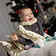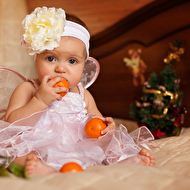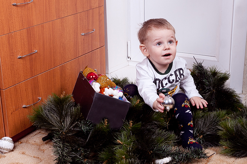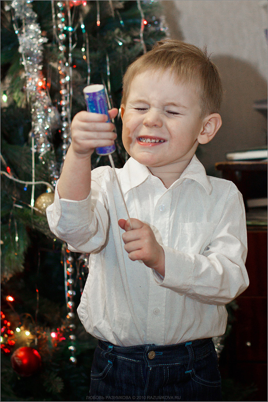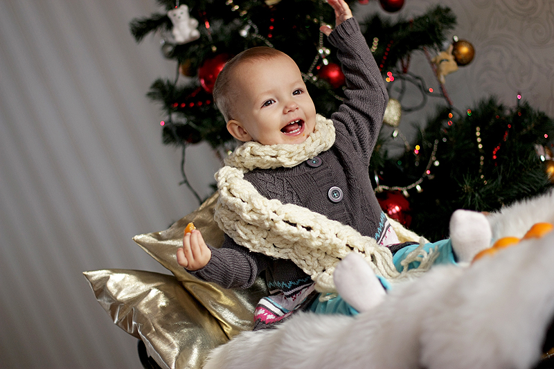 31 декабря прошлого года ему было 6 месяцев, но вот сидеть самостоятельно никак не получалось еще. И вот , когда до боя курантов оставалось еще целых 2 часа и сынуля никак не желал спать этой ночью, под елочкой я обнаружила сюрприз, сын сел сам! вот это был настоящий праздник, все засуетились, надели на него шапку, я побежала за камерой - так и сложилась история этой фотографии..