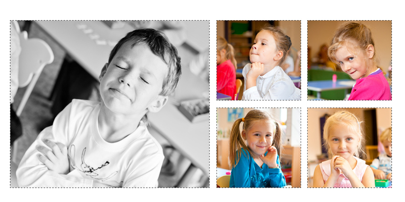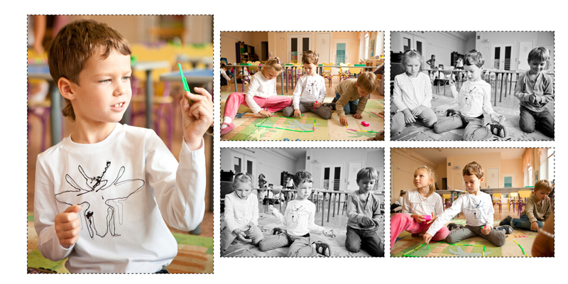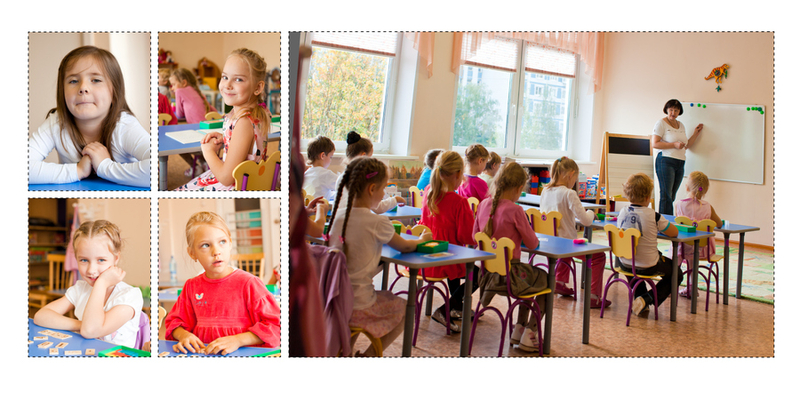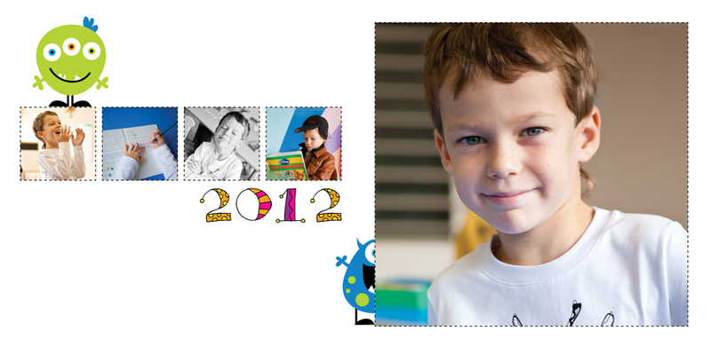 У меня встречный вопрос: оговаривался ли план книги с заинтересованным лицом? (родитель, учитель). ЕслиУ меня была выбран конкретный макет (здесь будет один портрет, текст, а вот тут коллаж, тут виньетка, - то я просто делаю макет, придумывая дизайн и верстку. Тогда идеи сами приходят, не надо придумывать велосипед.