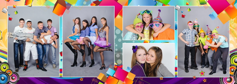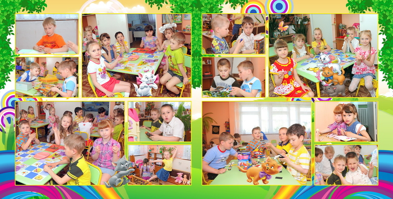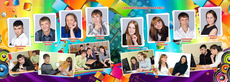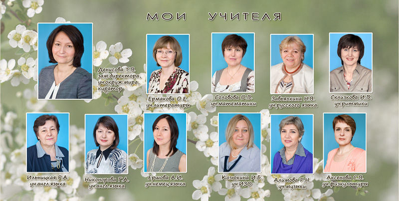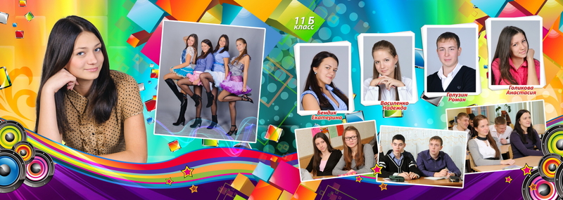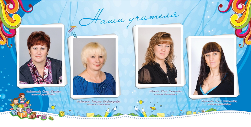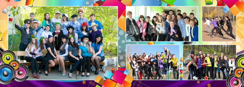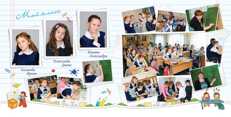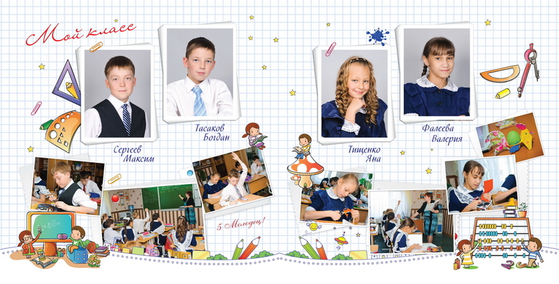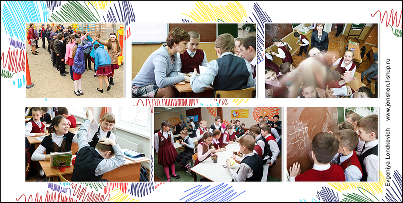 1-й разворот индивидуальный, 2-й - учительский, 3-4 - коллажи, 5-й - группа.