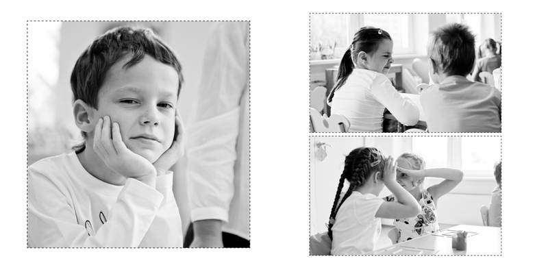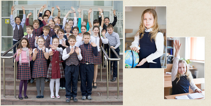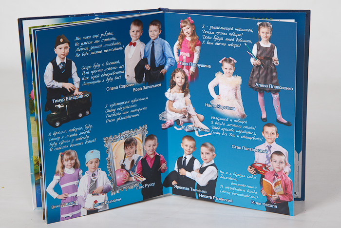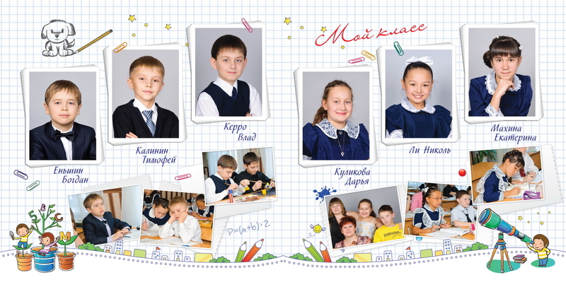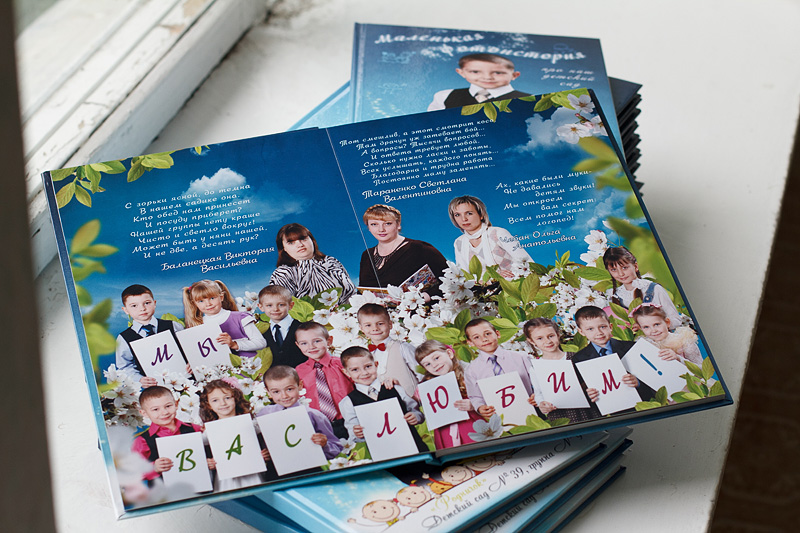 Для 4-х в этом году делала фотокнигу на 6 разворотов. 3 личных и 3 общих. У одного класса была на съемке масленицы, поэтому сделала и личную для каждого по масленице.