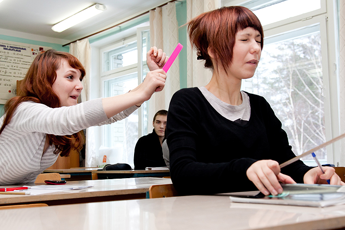 Вопрос - а снимаете прям в школе со своим светом и такими большими фонами или студию арендуете?