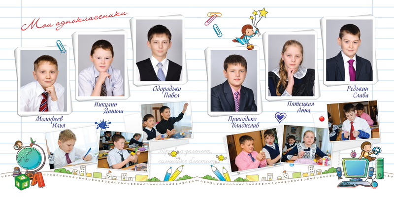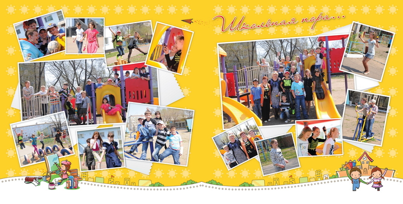 Делаю выпускную книгу для старшеклассников. Все было хорошо, сделала для детей вот такой разворот: