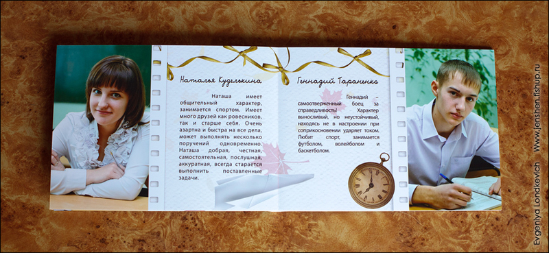 2. "Наш 4й Г" - 20х20 см, 5 разворотов 3. "Наш выпускной альбом" - 15х21 см., 20 разворотов 4. "Любимой школе" - 15х21 см., 10 разв. (о каждом ученике) Все фотоматериалы опубликованные на сайте имеют своего автора. Использование фотографий без разрешения автора запрещено.