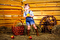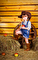 Когда я увидела в гардеробе маленькой Леры этот кантри-наряд, в голове сразу нарисовалась картинка сеновала и красных яблок. До лета ждать ещё долго, поэтому воспользовались студией.