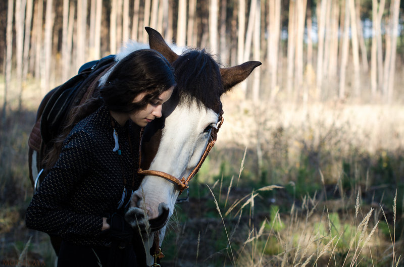 На всех фотографиях происходит.... ничего. Ходят они вдвоем, девочка позирует сама по себе и периодически не знает чем заняться, а лошадь стоит. Скучная, в общем, история получается. А на 26 вообще откуда не возьмись собака)