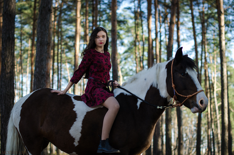 В целом в серии есть некое настроение а-ля "странная/загадочная девушка с лошадью", я бы только немного проредила фото, чтобы усилить этот эффект (фото на фоне сена точно не из этой серии, и еще некоторые дубли можно выкинуть). По цвету довольно органично смотрится, приглушенные холодноватые тона хорошо дополняют картинку, и девушке эта "холодность" очень идет. Потенциал у вас хороший, снимайте, анализируйте ошибки, снова снимайте, думаю, прогресс не заставит себя долго ждать :)
