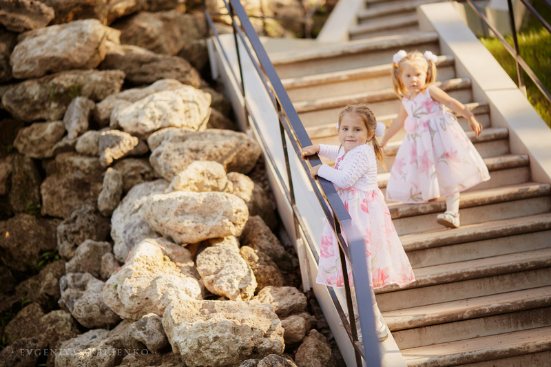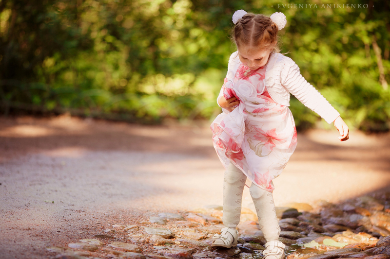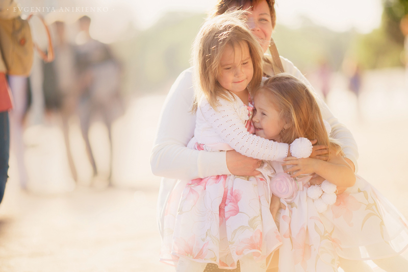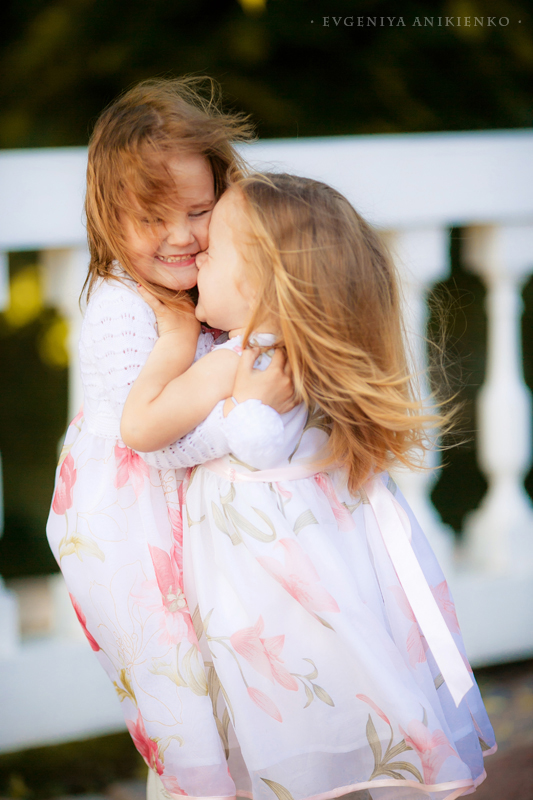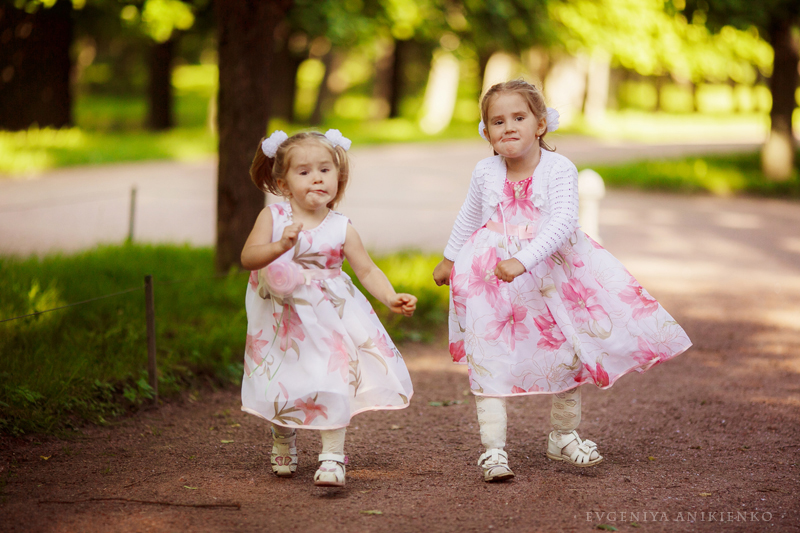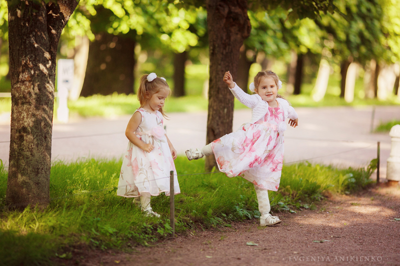 Родителей лишили родительских прав, и пока девочки были в больнице, благодаря программе "Пусть говорят", вся Россия активно искала им новую семью. И семья нашлась очень быстро. Это оказалась семья Натальи из Питера, и своих у них уже было трое детей. Они забрали Ксюшу и Женю домой прямо из больницы. Все это я узнала уже из второго эфира о девочках. Смотрела я именно его - когда они уже были в семье и Ксюшу реабилитировали с протезами. Я полезла в инет искать о них больше информации. И нашла группу Вконтакте, там волонтеры писали о новостях девочек, а также сама Наталья и ее старшие дочери. Почитала новости и офигела. Меньше, чем за год с того момента, как девочки попали в новую семью, Ксюша научилась заново ходить на протезах, и не только ходить, но и бегать, кататься на роликах, коньках, велосипеде!.. Ей дается это через боль и стиснутые зубы.Протезы натирают нежную кожу на ножках до крови и волдырей. Кроме того, неоднократно после ампутации она еще была в больницах на обработке швов - их зашивали не один раз... Но при этом она искренне радуется и улыбается своим достижениям. И очень, очень упрямо движется вперед сквозь боль. Мне захотелось сделать подарок этой семье, подарить им красивые фотографии. Но они в Питере, а я в Москве. И хотя я всем сердцем люблю этот северный город, там осталась, наверное, треть моего сердца.. Но встретиться нам удалось только через полгода, летом. Я приехала в Питер и мы встретились в Петергофе. Жаль, что не получилось собрать всю их большую семью, и приехала только Наталья, Ксюша и Женя. Старшие девочки были заняты работой и поступлением в Вуз. Я увидела их - и была очарована. Наталья - педагог по образованию. Она мягкая, нежная в общении, но в то же время твердая и уверенная в своих намерениях. Именно поэтому, наверное, девочки попали к ней, хотя кандидатов на опеку было несколько. Ксюша... девочка-огонь. С нами на прогулке было 3 детей: Ксюша, Женя и мой Матвей (3.7г), Ксюша их обгоняла и вообще давала жару всем, в том числе мне. Поймать ее в кадр было очень сложно, Женечка в кадре гораздо чаще. Эта девочка давно восхищает меня своей упорностью и терпением. А здесь я увидела все своими глазами: от