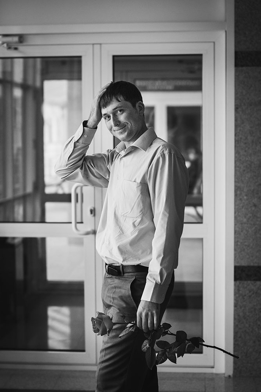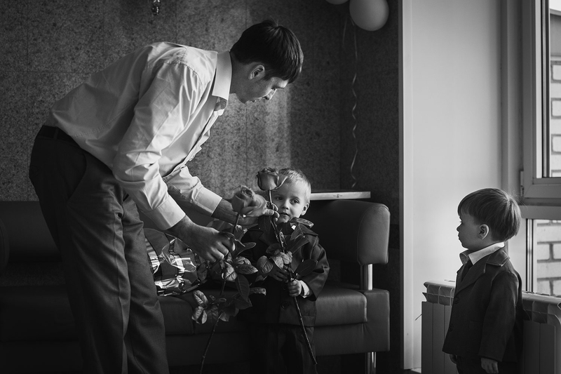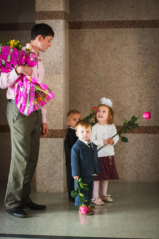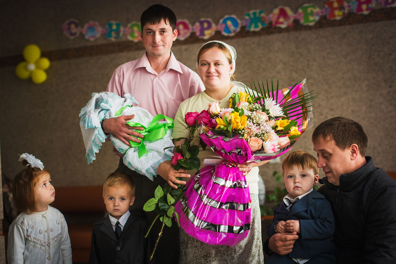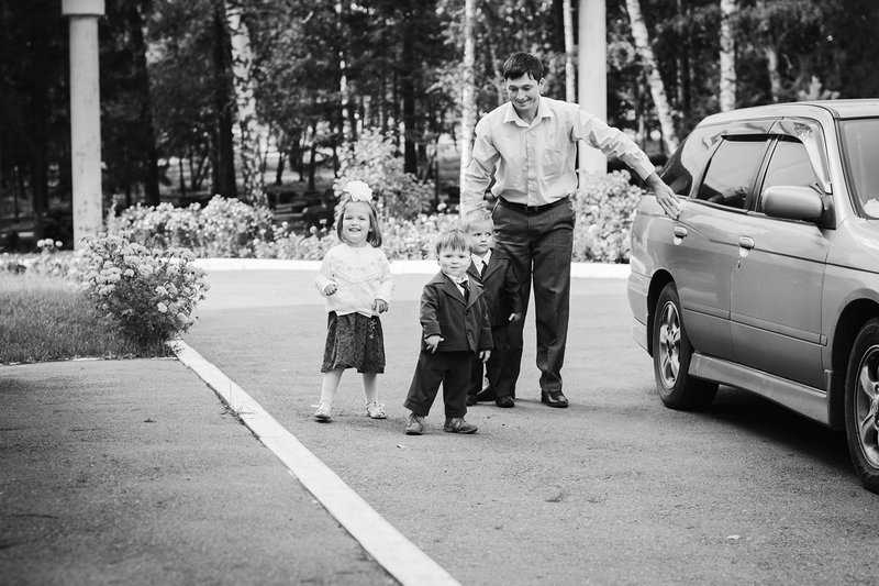Очень трогательная съёмка получилась, отец уже немаленького семейства встречал жену с четвёртым малышом. Тут было всё: и радость, и томительное ожидание (администрация роддома немного затянула с процессом оформления документов), дети устали, уже и спать хочется... ну, где же мама? И вот она, с долгожданным конвертом на руках.