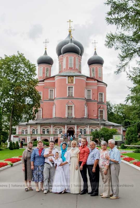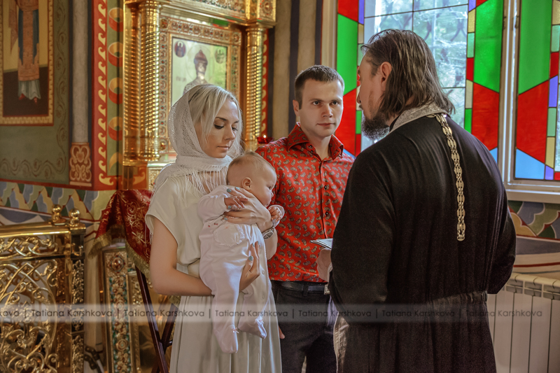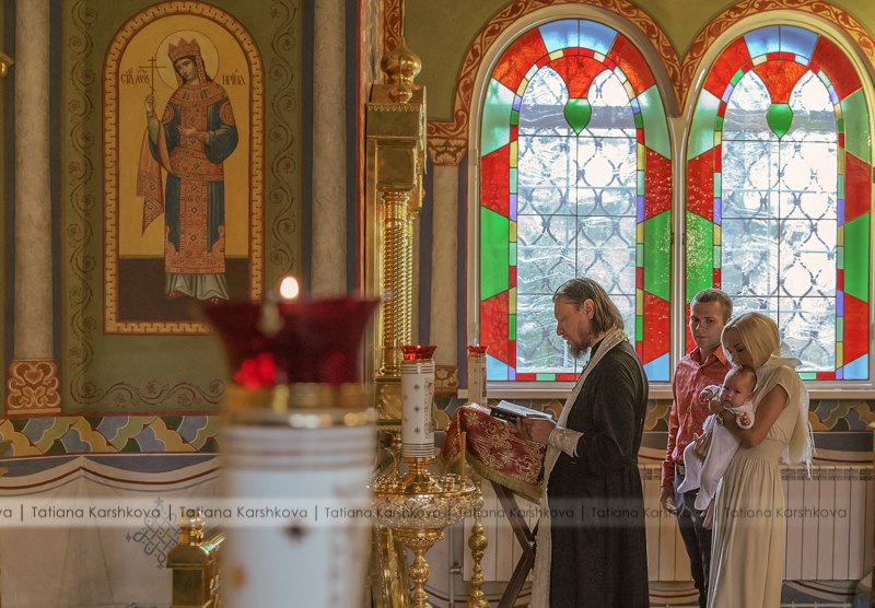 В одном их Храмов Донского монастыря. Первый раз снимала крещение длинною в 15 мин. Это было ужасно, все быстро, в спешке. Даже свечи в момент хода купели не зажгли.