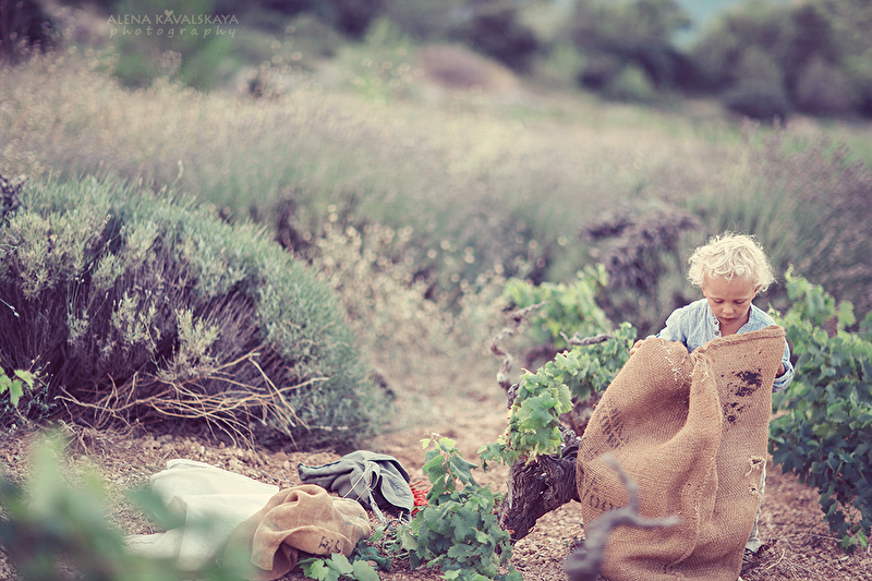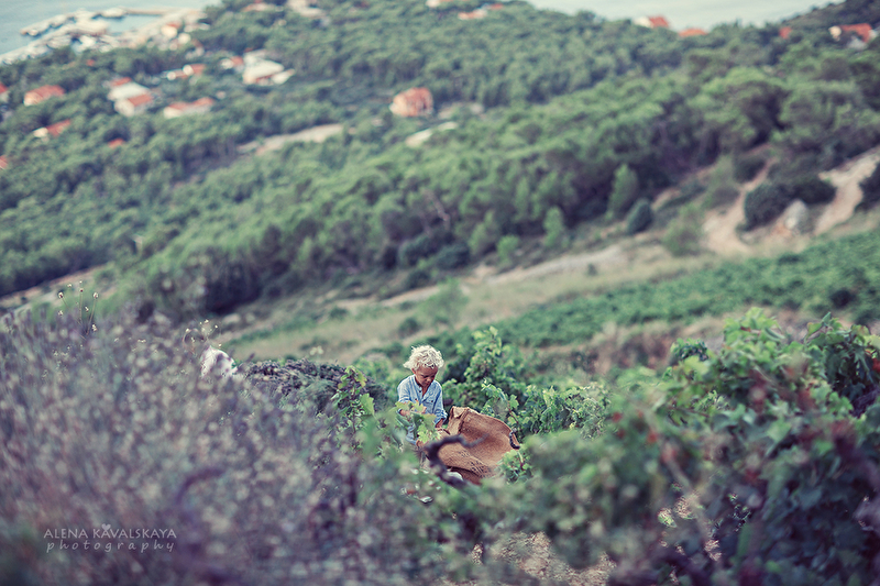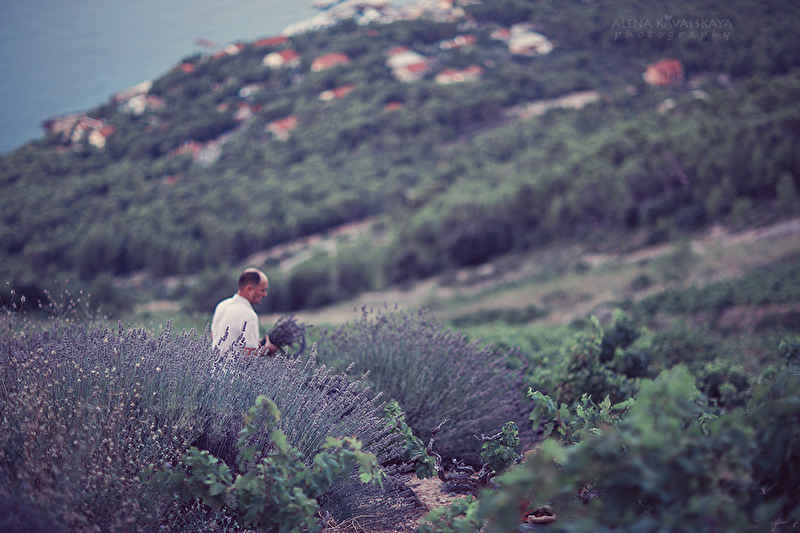 Во время наших путешествий, мы очень любим углубиться в "сокровища и ценности" той страны/местного населения, в которой мы находимся. Отправляем запрос во Вселенную и неожиданно получаем ответ! А с мега любопытным Артемом - это несложно. Его светящиеся быстрые глазки, ручки, ножки готовы забежать в любой дом, потрогать любой инструмент и до получения разрешения начать его использовать))) И так получилось, что в Хорватии, на острове Хвар в деревушке Святая Неделя нам вручили, как подарок, эту возможность увидеть лавандовые поля ( это не совсем широкие поля, как на картинках, это дико растущая на горных склонах лаванда по несколько кустов среди виноградников и другого горного разнотравья) на рассвете! Один очень светлый фермер согласился отвести нас туда, на поле своей деятельности. Под рассветными лучами солнца сборщики лаванды косят "готовую" лаванду, поднимаясь вверх по склонам пока солнце не станет очень жарким, труд это непростой, но он так прекрасен! Потому что вид открывается потрясающий. И вот мы такие састливые на энтузиазме туда приехали и устроили свою фотосессию, а Артем под шумок увлекся самим сбором, вначале он наблюдал, а затем взял косу и сам начал косить, причем Тео (тот самый знакомый винодел-лаванддел, я не знаю как его обозвать, он и лаванду собирает, и масла делает, и оливки, и винодело у него свое передающееся из поколения вот уже сколько лет) его начал учить. Он показал Артему как косить, как удобно складывать в мешочек на поясе, как правильно складывать в основной мешок, там тоже свой принцип.