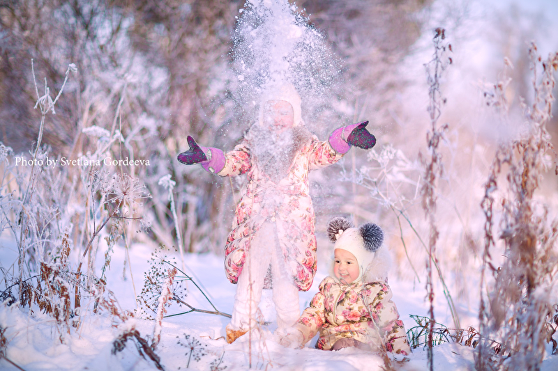 Вытащила своих девчонок на прогулку, столько снега! Очень морозно, розовый хрустальный воздух, пунцовые щеки, счастливые детки), как это здорово, когда есть родная сестричка! Смех, секретики, восторг-захотелось вам показать)