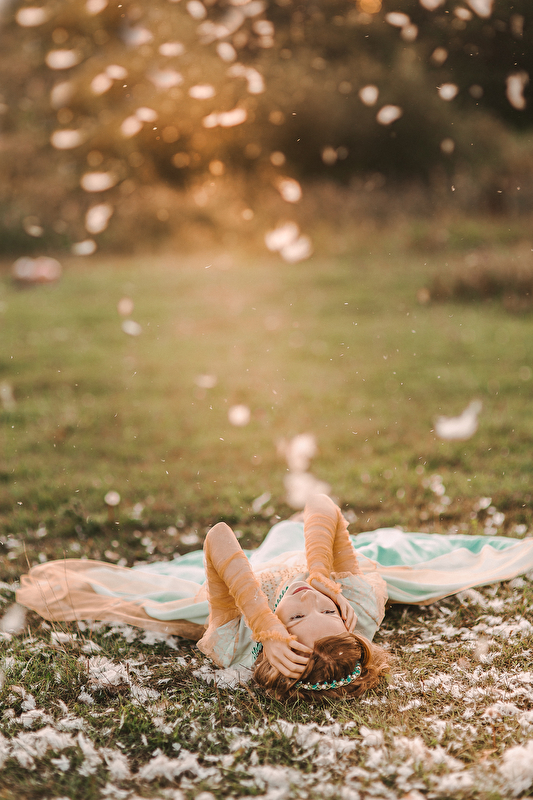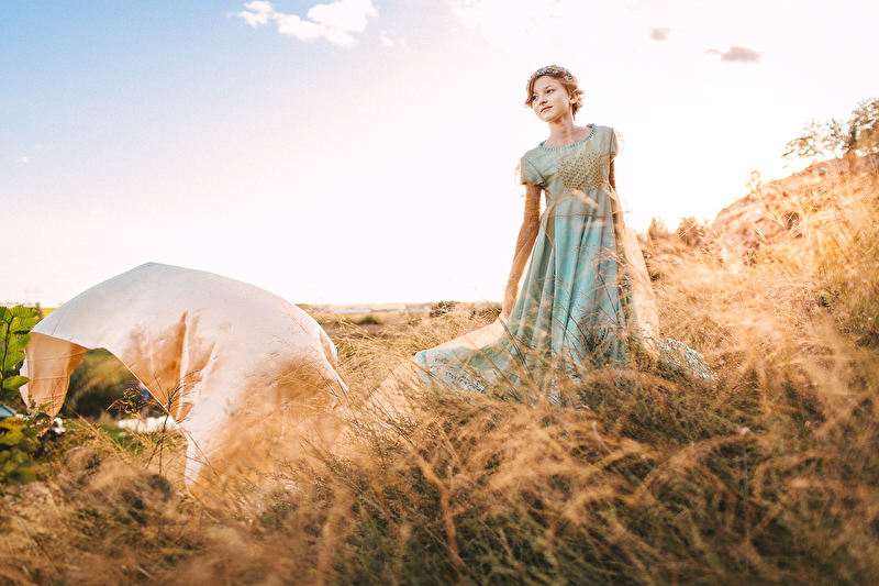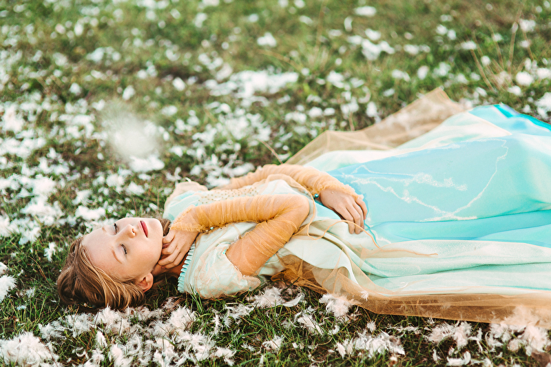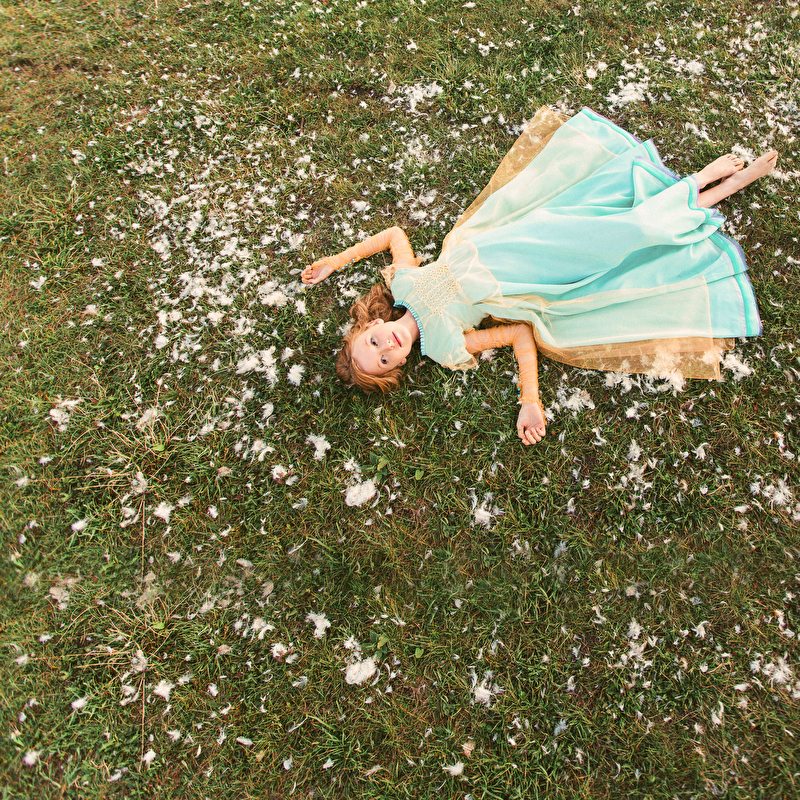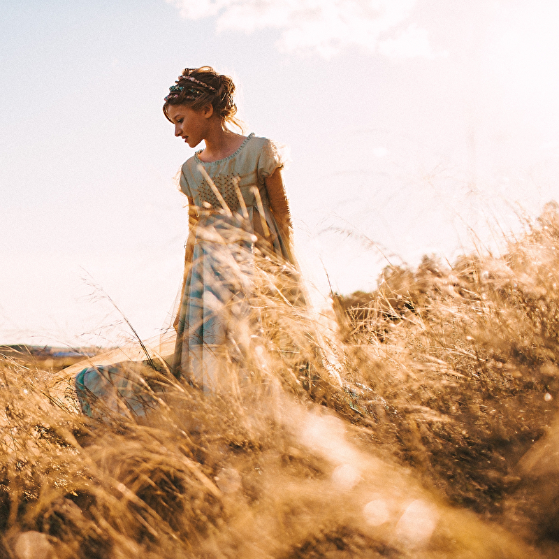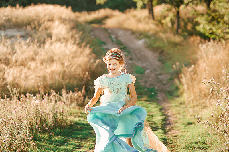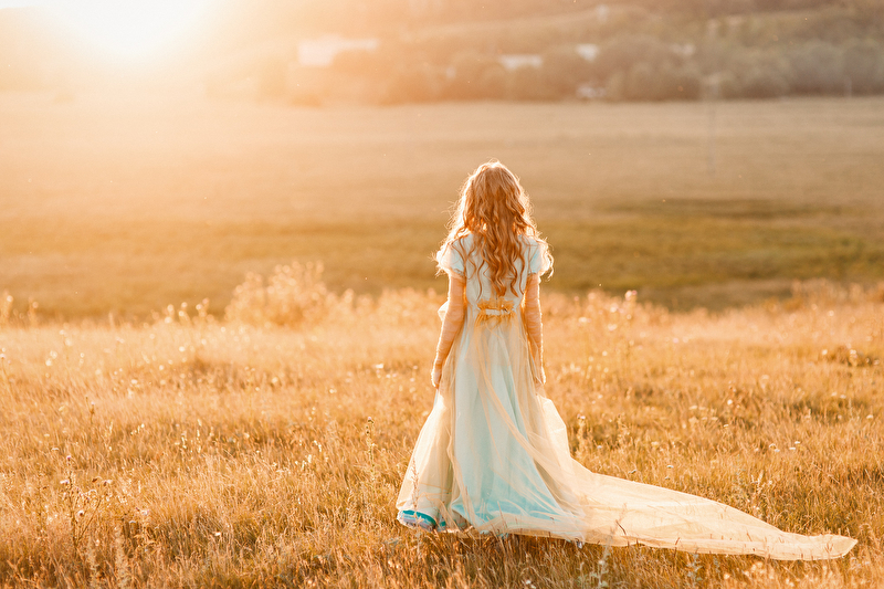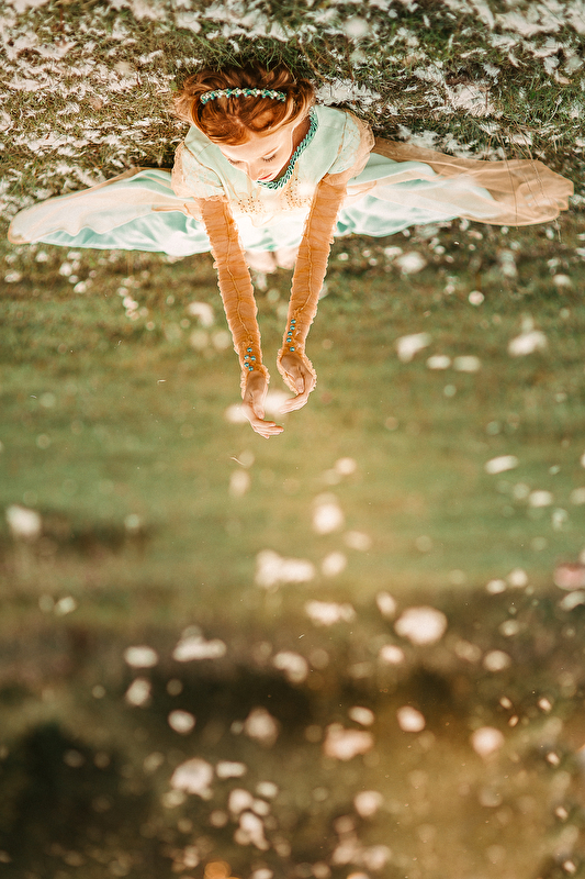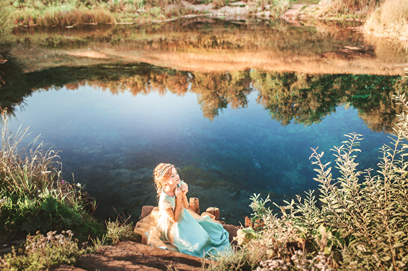 ...Пролетели и весны вдохновенные дни. Отогрелась душа у Королевишны. Наступило лето: босоногое да жаркое. Взгляд очарованием леса наполнился, во власах её утренние росы сверкают с солнцем играючи. Ветер с полевыми цветами балуется да на водах глубоких круги пускает. Разыгралась Королевишна в прятки да в салочки. Легко на душе и свободно стала. И тропинка домой показалась, да не по земле та прошла, а по ветру задержалась. Побежала Королевишна навстречу солнцу закатному ко лесной владычице, в перьях кутаясь… То ли сон то был, то ли правдою…