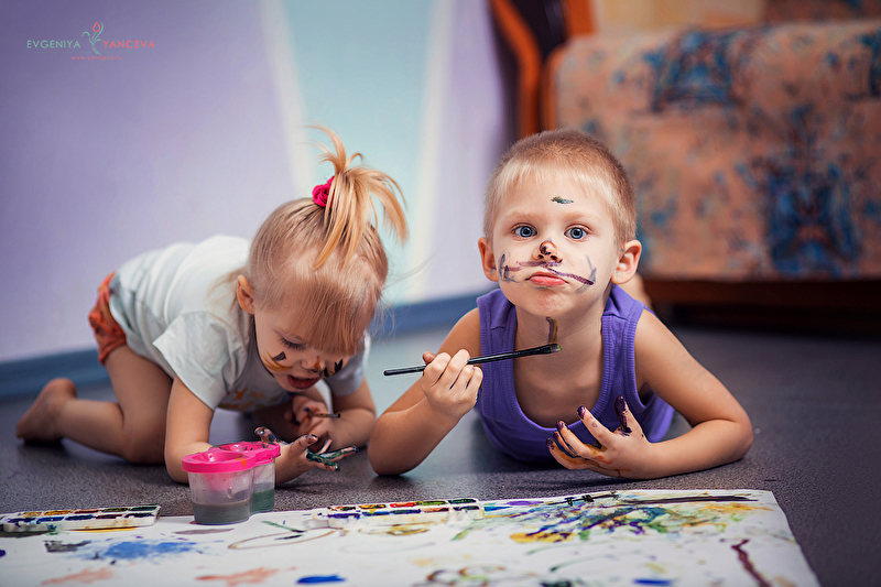 Дело было вечером... скучно было нам! Решила дать волю детскому творчеству! Помнится где то завалялся ватман и краски... Детки как поняли что сейчас будем творить, бегали вокруг меня и кричали " маам я хочу рисовать!!!" Скрутили ковер, расстелили ватман... и вуаля! Сначала все начиналось совсем безобидно :) а потом началоооось! рисовали на всем, на руках, на ногах,на лице, на полу... ну и немножко на ватмане :) Потом пошли отмываться, перепачкали всю ванну.