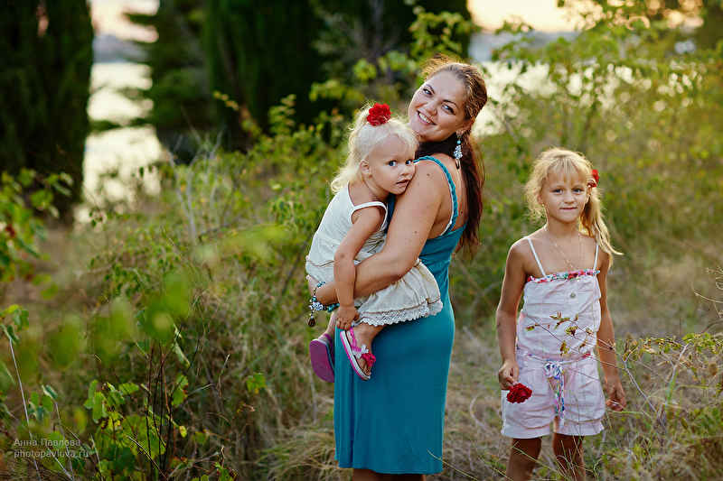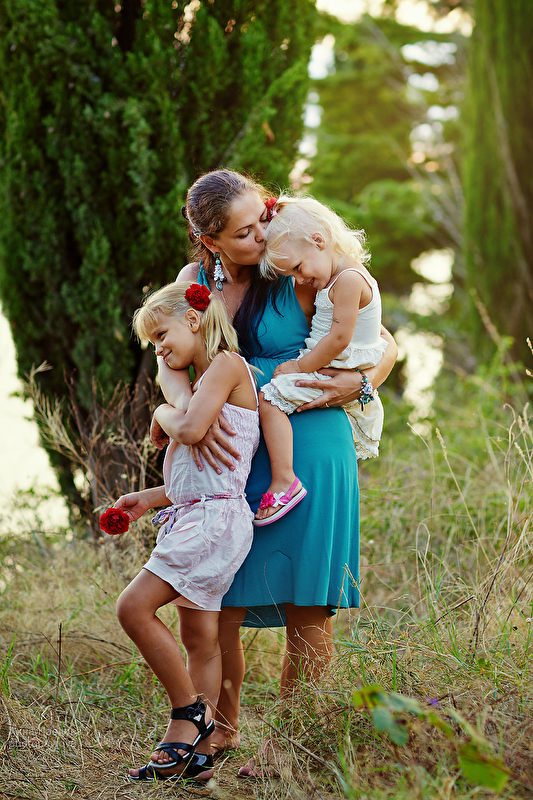 Погуляли с девочками на закате среди сосен и кипарисов после жаркого августовского дня)