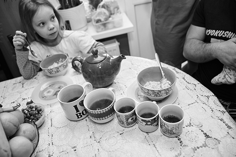 Есть свой парикмахер, к которому ходит вся семья. Чинить машину мы поручаем обычно проверенному автомеханику. Иметь статус постоянных клиентов приятно, а иногда и полезно :) Ведь это подарки, бонусы и скидки :) К чему я веду? К тому, что фотограф тоже должен быть семейным. Он должен знать, как зовут ваших детей. Знать, что ваш сын обожает вертолеты, а дочка вопреки стереотипам не любит розовый. Фотограф должен быть свой. И своего фотографа тоже нужно найти. Как врача и парикмахера. В рамках проекта «Семейные традиции» на днях я сняла одну из моих любимых семей. И могу с уверенностью сказать, что для этой чудесной многодетной семьи я - семейный фотограф. Эта серия называется «Многодетный завтрак». Завтрак в семье, где из мужчин только папа и кот. Все прелести многодетного материнства: от количества блинов, которые стоит пожарить, до количества кос, которые нужно заплести. И только потом - время на себя, а точнее, только на чай :) Все фотоматериалы опубликованные на сайте имеют своего автора. Использование фотографий без разрешения автора запрещено.