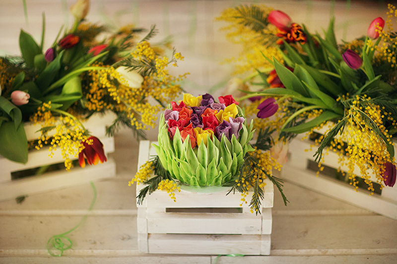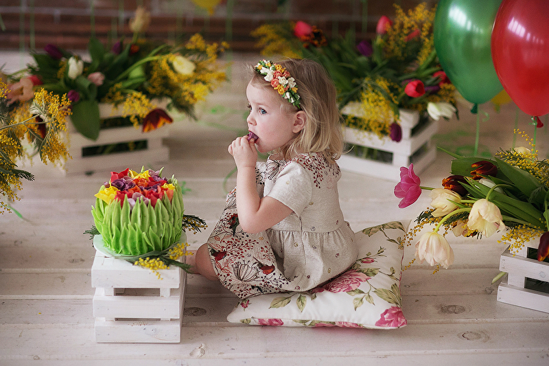 В общем-то, все понятно в названии темы :) Весна для меня всегда была очень долгожданной. А теперь она значит для меня еще больше - время, когда жизнь изменилась навсегда. Свой первый тортик Маруся пробовать отказалась, поэтому я организовываю для нее эти тортики каждый год. В этом году захотелось чего-то яркого и очень весеннего! Шарики и цветы - то, что надо :)