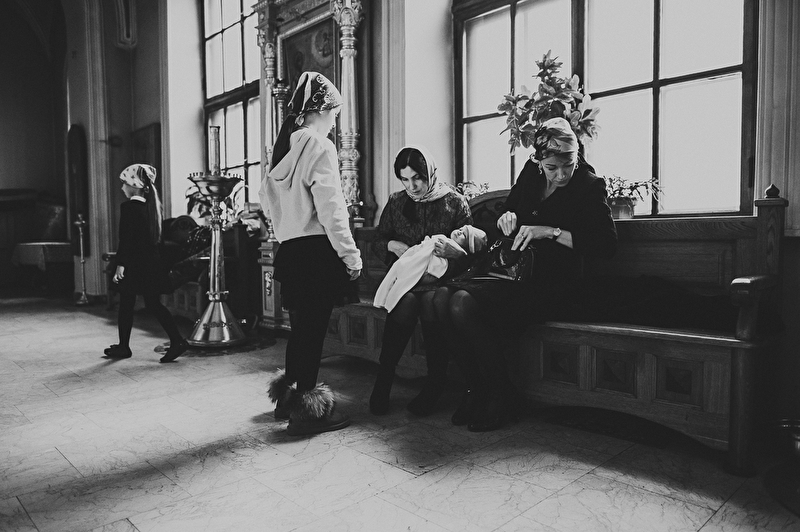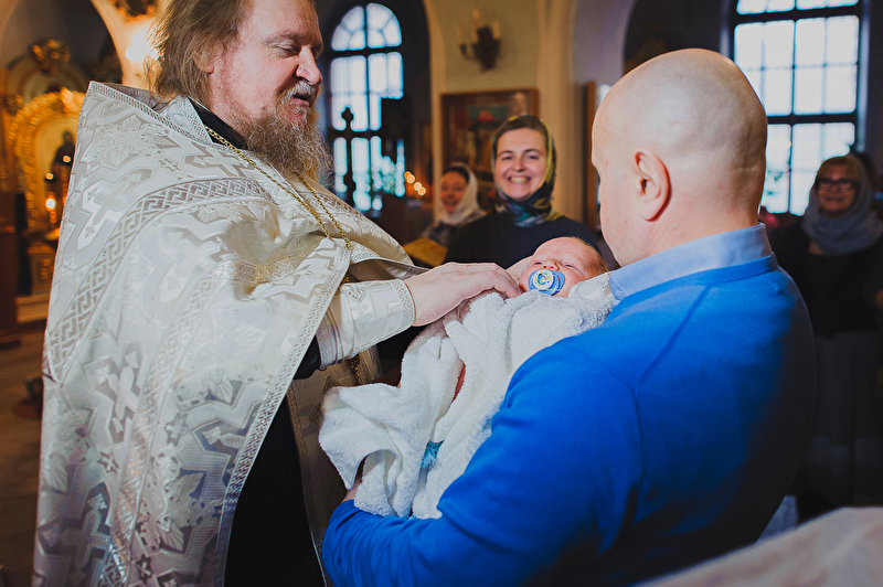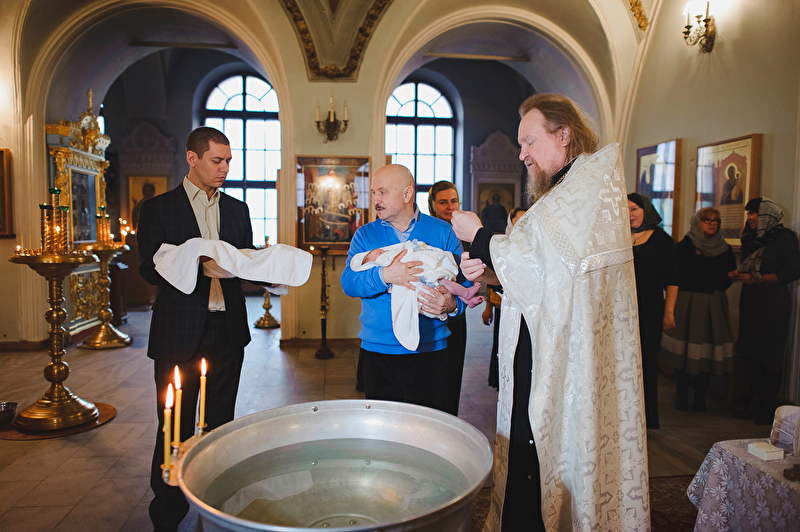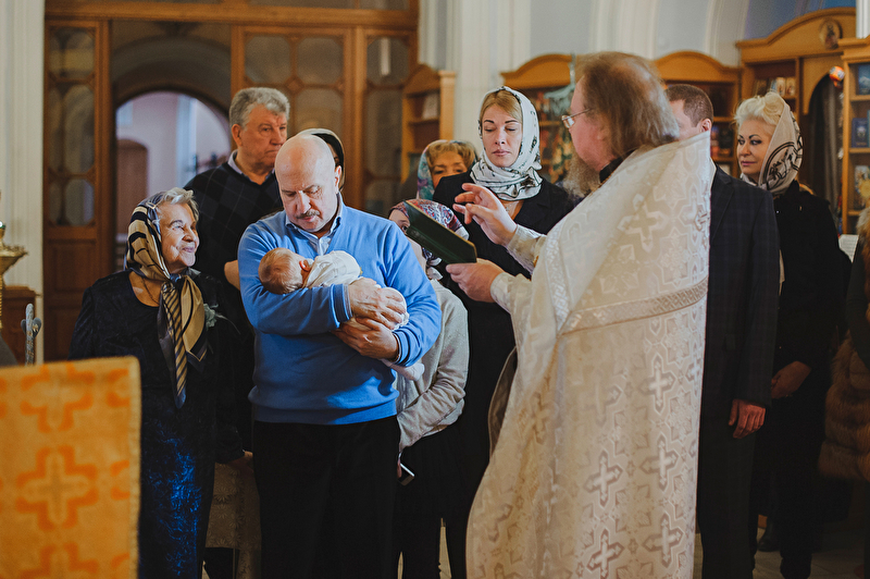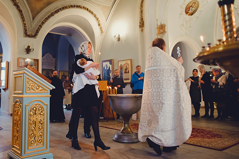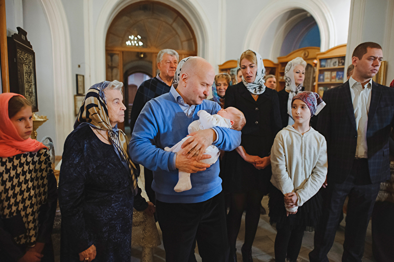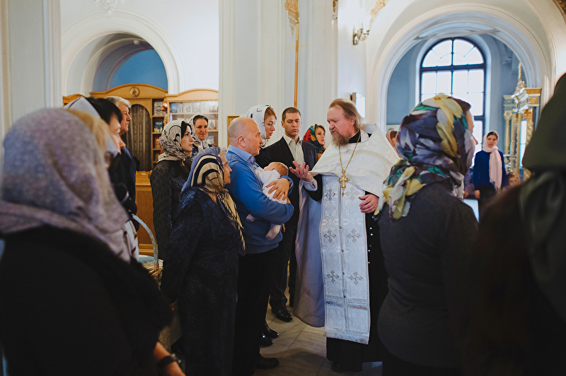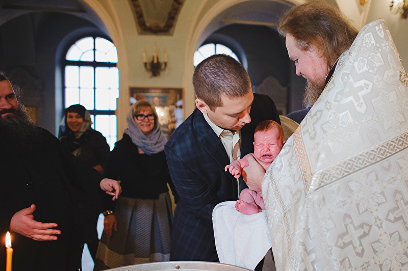 Это было трогательное и не совсем обычное крещение. Большая красивая церковь, много счастливых людей, объединенных важным светлым событием, и по-настоящему счастливый отец :) Почти все таинство он не выпускал сына из рук, и даже в конце крещения именно он, а не мама, принимал сына из рук батюшки. Такое я видела впервые. Во время каждой съемки в церкви узнаю что-то новое, и от того еще больше люблю свою работу. А еще впервые на крещении была вместе в оператором, обычно такое на свадьбах бывает.