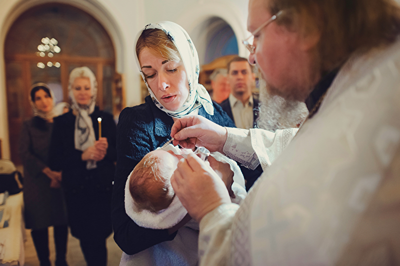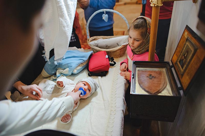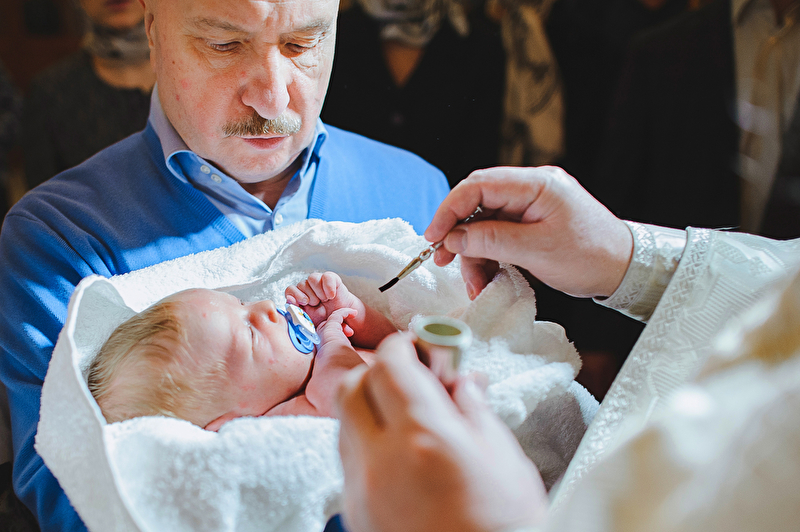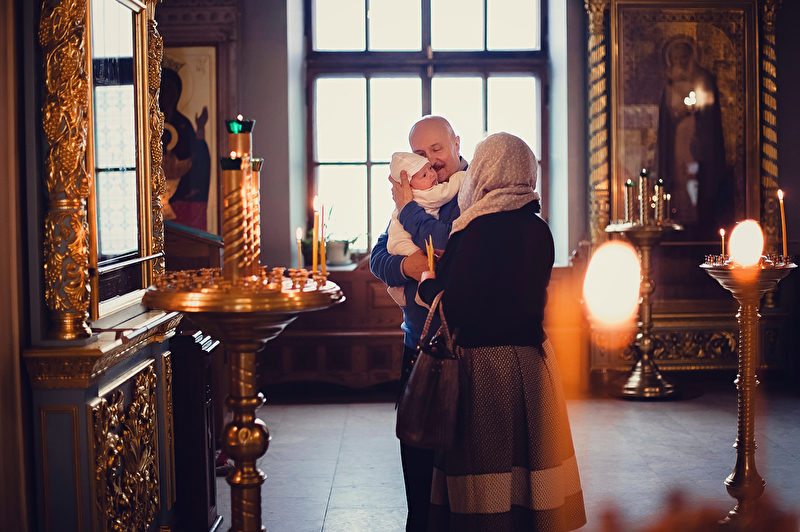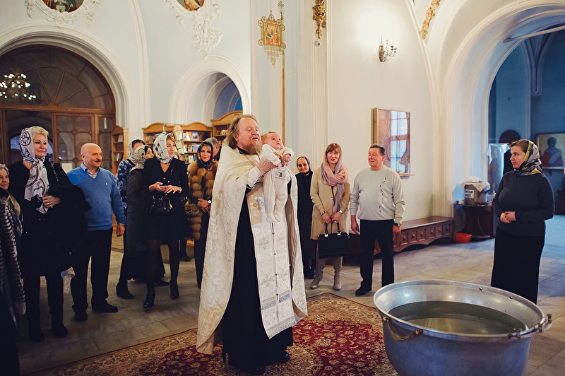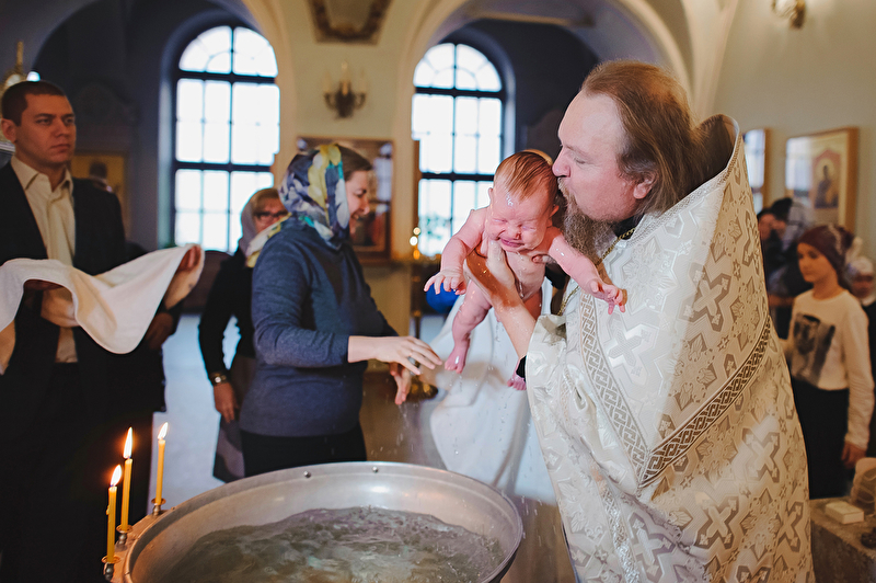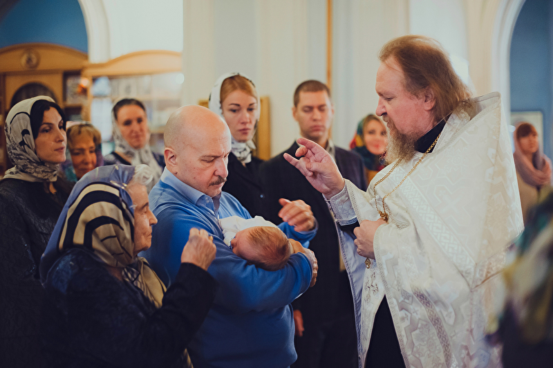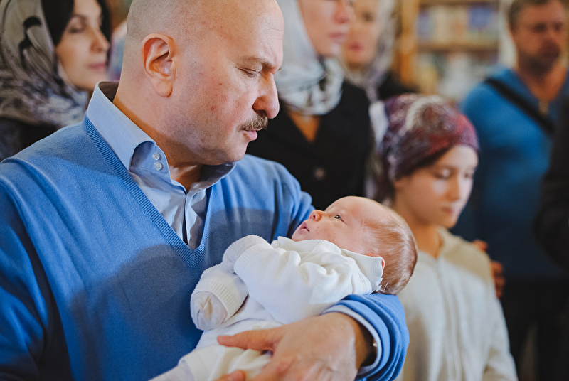 Это было трогательное и не совсем обычное крещение. Большая красивая церковь, много счастливых людей, объединенных важным светлым событием, и по-настоящему счастливый отец :) Почти все таинство он не выпускал сына из рук, и даже в конце крещения именно он, а не мама, принимал сына из рук батюшки. Такое я видела впервые. Во время каждой съемки в церкви узнаю что-то новое, и от того еще больше люблю свою работу. А еще впервые на крещении была вместе в оператором, обычно такое на свадьбах бывает.