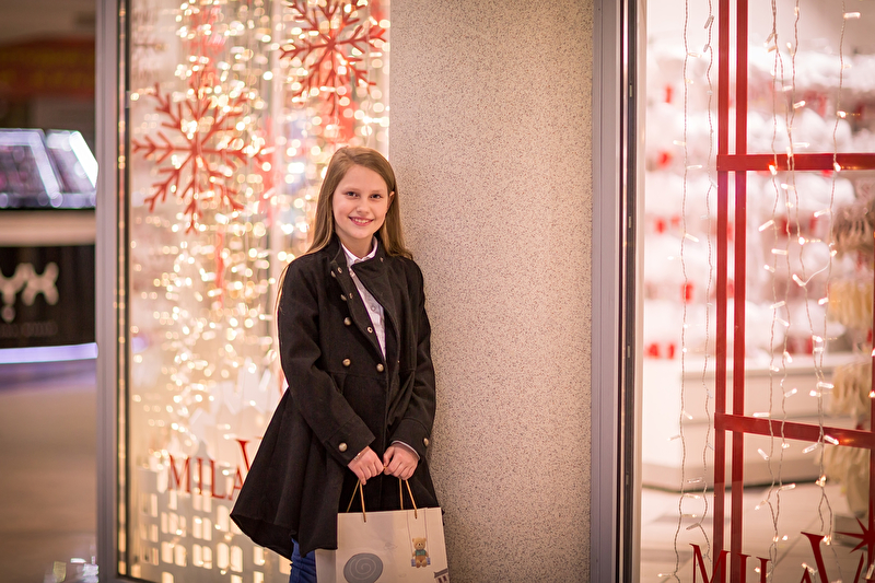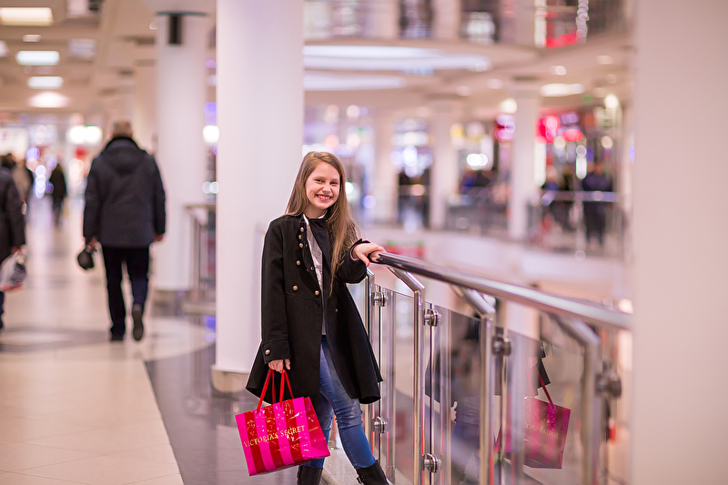 Один чудесный день маленькой леди в модном торговом центре