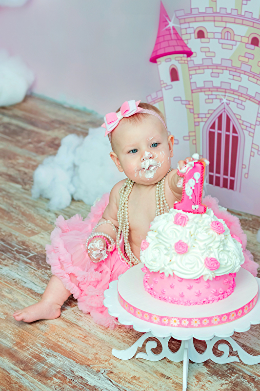 Дали тортик маленькой Лизе на "растерзание". Никаких запретов «не трогай, а то запачкаешься» :) Вот что получилось: