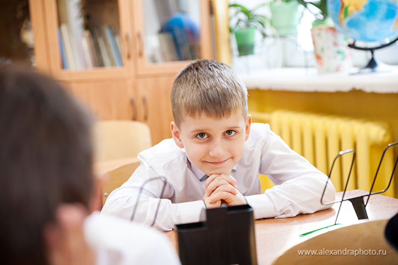Материал должен быть не совсем репортажный, можно постановочный. Но все-таки конкретно школьный: уроки, знания, дети...