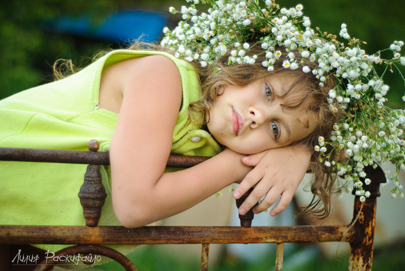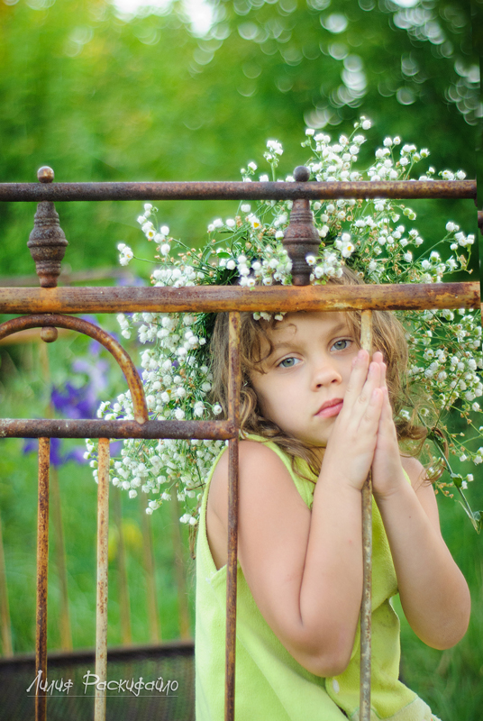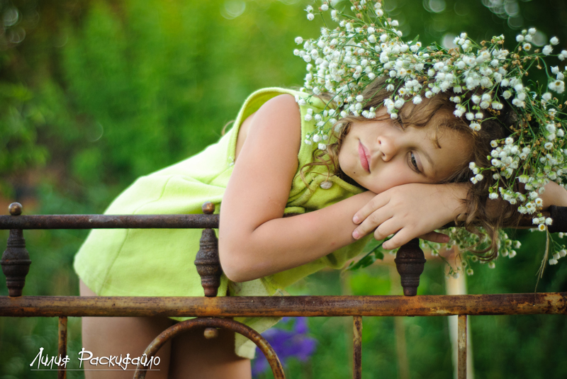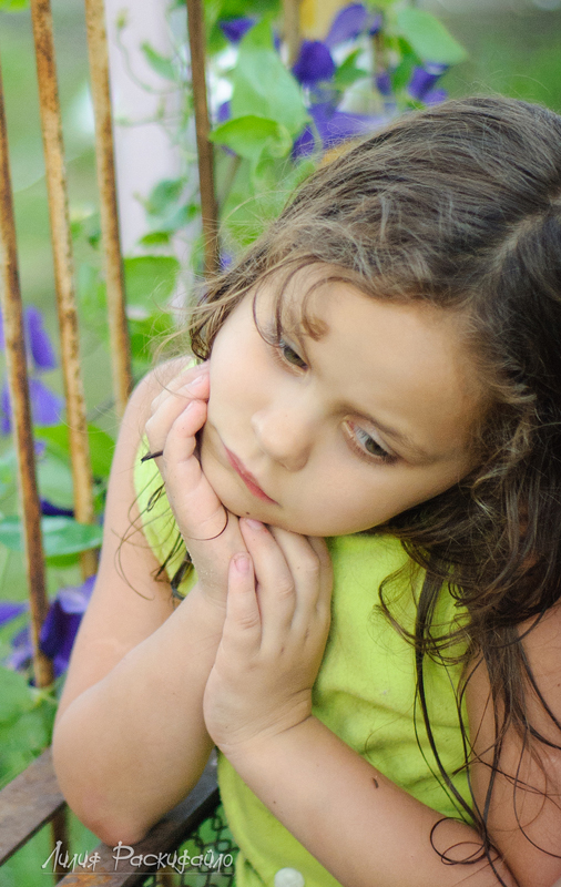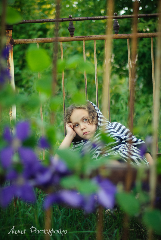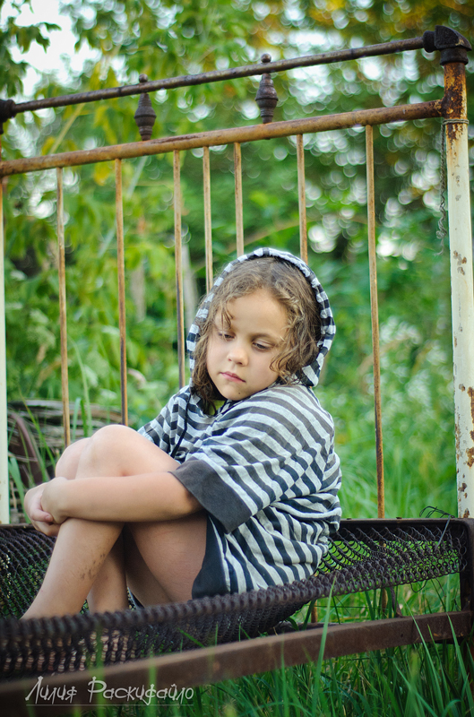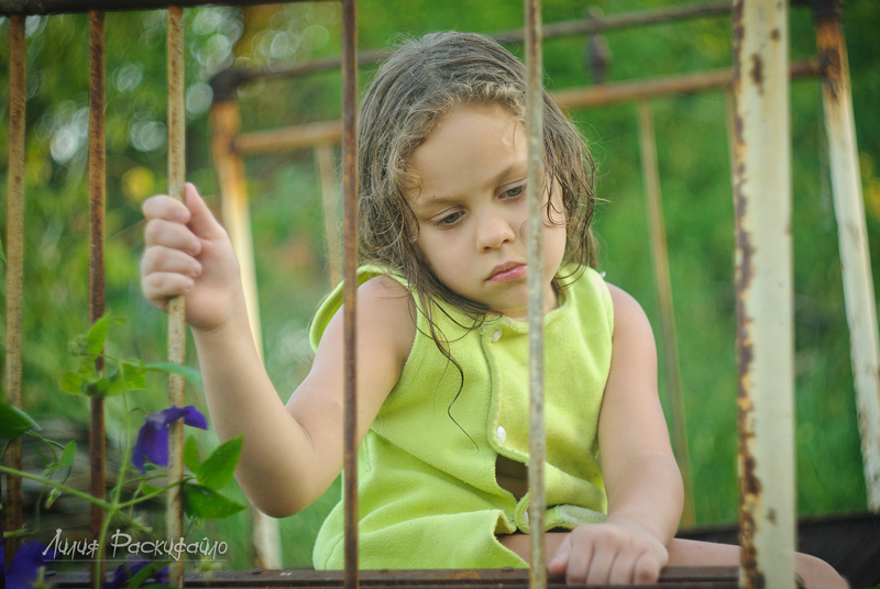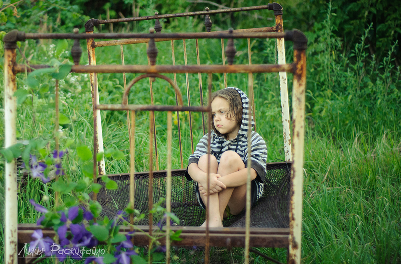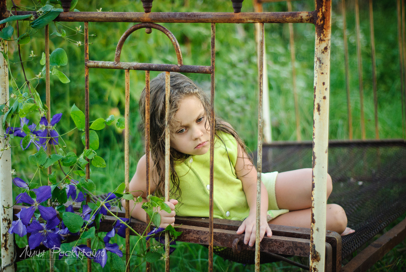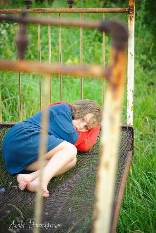 Каждые выходные ездим семьёй на дачу, детей рядом на дачах почти нет и Настюня к вечеру начинает скучть и я попыталась совместить (показать) в фотографиях Настюшино настроение и кровать которая на даче ржавая стоит. Буду рада Вашим замечаниям и критике.