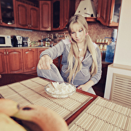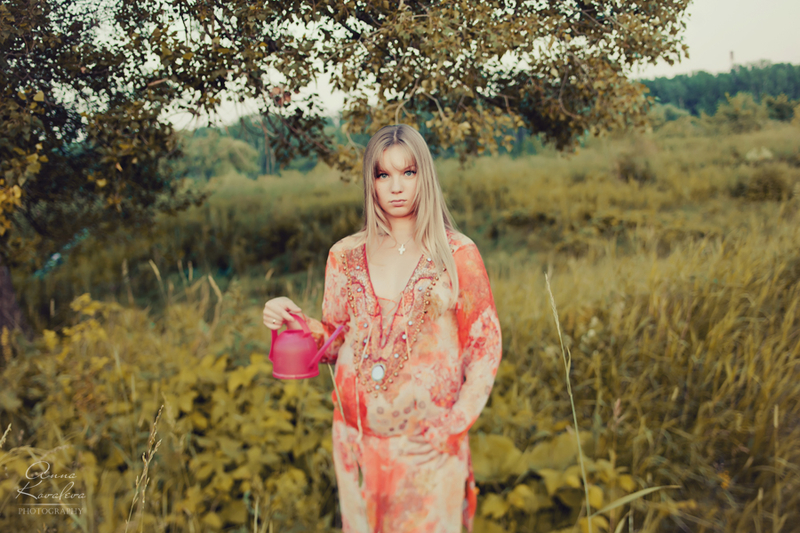Только зачем девушка себе из лейки живот поливает, чтобы рос?))