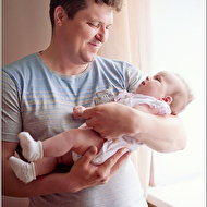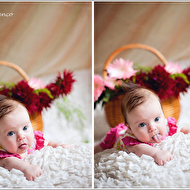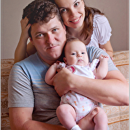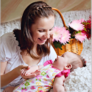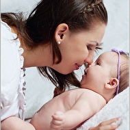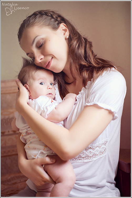 Но, мне кажется, на фото, где мама прижалась к носику ребенка, не очень выгодный ракурс для нее (мамы) - подбородок получился полноватым, а затылок плосковат. Может, поправить ликвифаем?