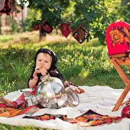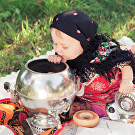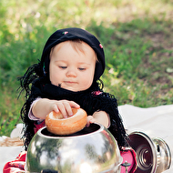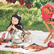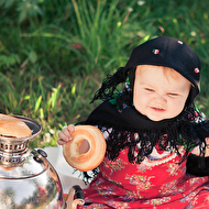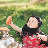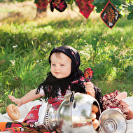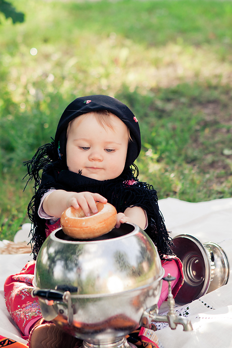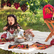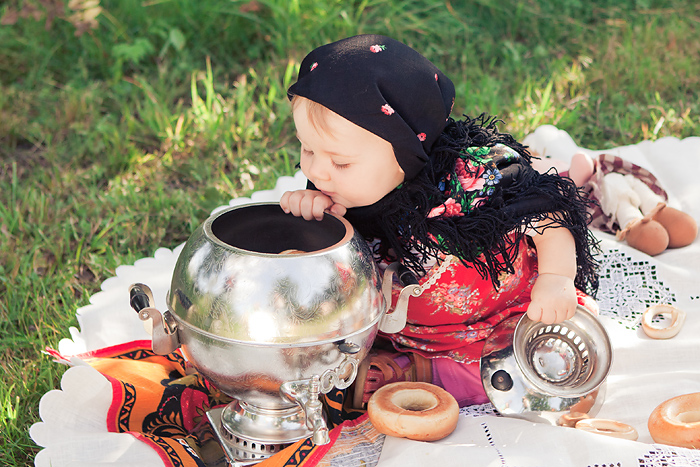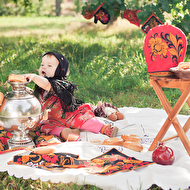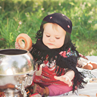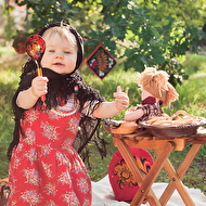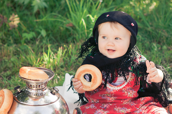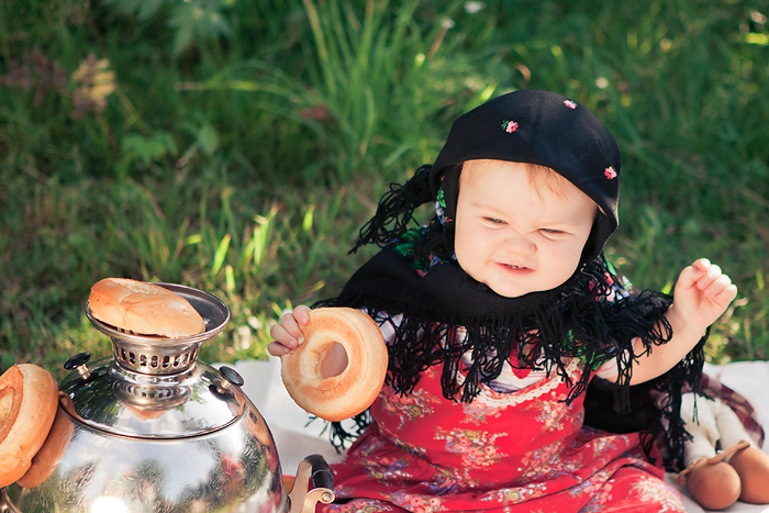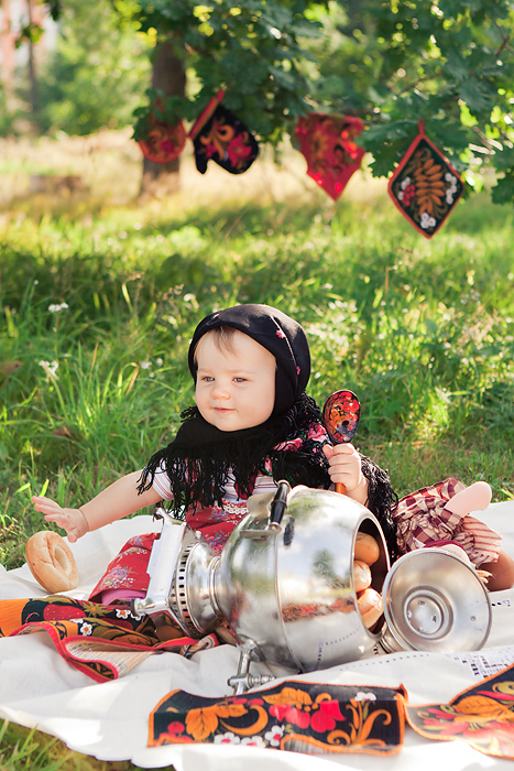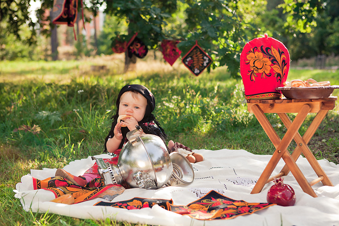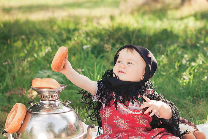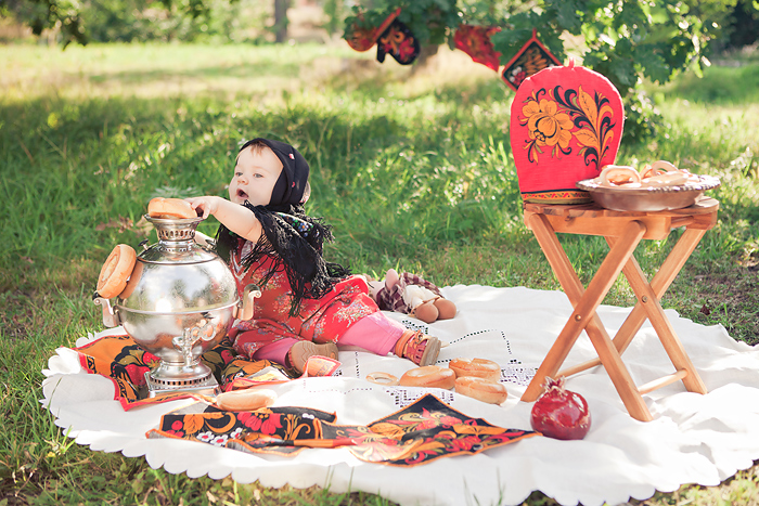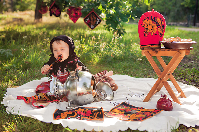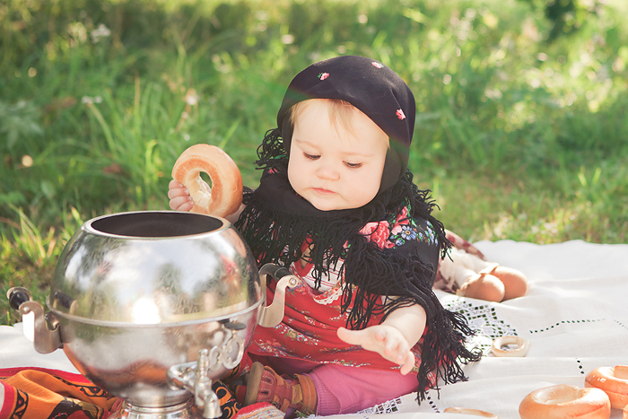 Сонечкин папа не знал, что они едут на фотосессию и был не очень-то доволен, что его вытащили с любимого дивана в выходной день, но когда он увидел дочь в таком наряде, повеселел и сказал, что она как little babushka. Отсюда и название нашей серии.