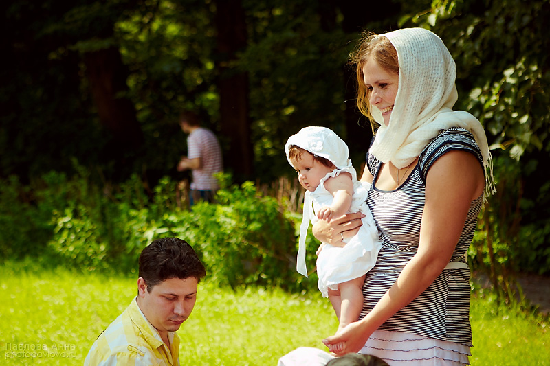 Этим летом в красивейшем храме Подмосковья -Церкви Рождества Пресвятой Богородицы я снимала двойные крестины- подруги Ольга и Ксения крестили дочек- Дашеньку и Лелечку и стали друг у друга крестными) Это был прекрасный день, настоящий праздник, с колокольным звоном и пирогами в трапезной храма)
