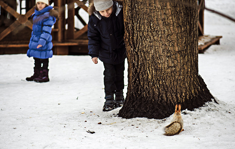 В субботу всей семьей поехали в парк кормить белок. Голодные, шустрые, но очень пугливые. Дети боялись ближе подойти. Белки сразу бежали прочь). Наконец настроила d4, это первая съемка на него. Кнопки и меню чуть другое. Надо еще привыкать. Сильных изменений, по сравнению с д3с пока не заметила. Кроме как в худшую сторону. Вторая карта другого нового формата. RAW на Lightroom 3 не читается, пришлось качать Lightroom 4. Т.е. новая камера вынуждает переходить на новую программу. С d800 та же история (две карточки - одна CF, другая SD - шаг назад). С него чб фотография).