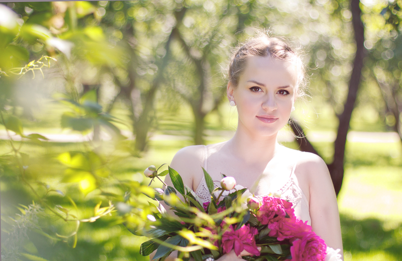 (и думаю...) а зачем девушке в яблоневом саду... пионы?