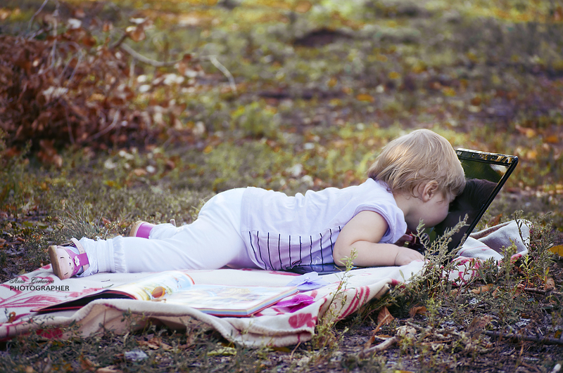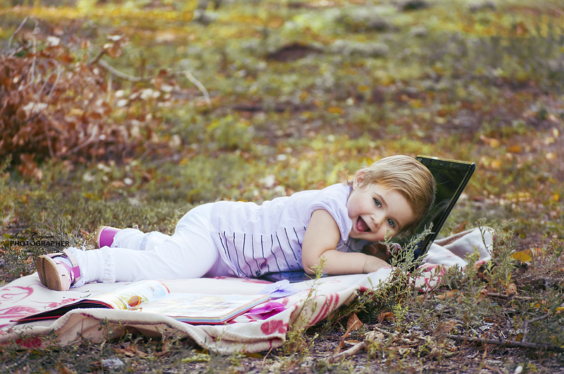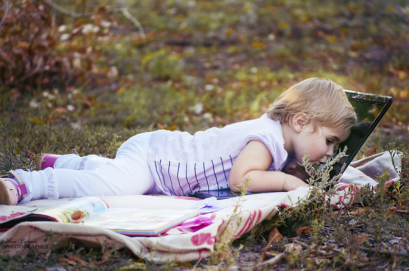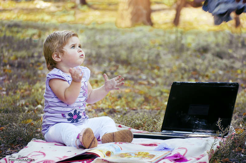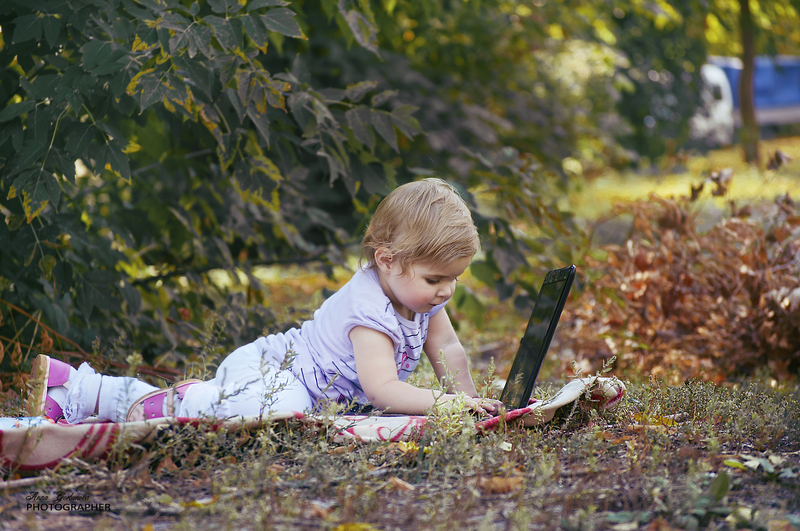 Не знаю почему, но маме этой девочки (Софья) безумно захотелось серию фотографий с ноутбуком....