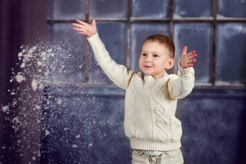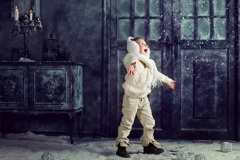 Это был один из первых моих фотопроектов, очень волнительно было как детки отнесутся к такому количеству искуственного снега и как себя поведут)