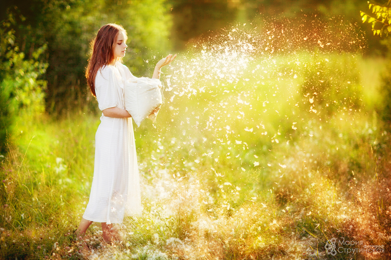 Для большого количества пушинок в кадре требуется всего лишь небольшая горсточка пуха :)