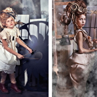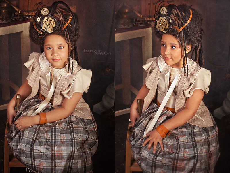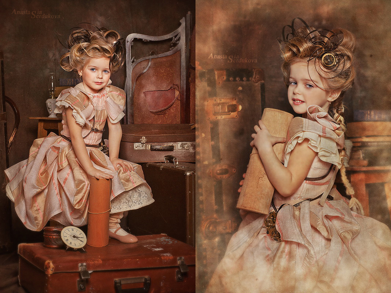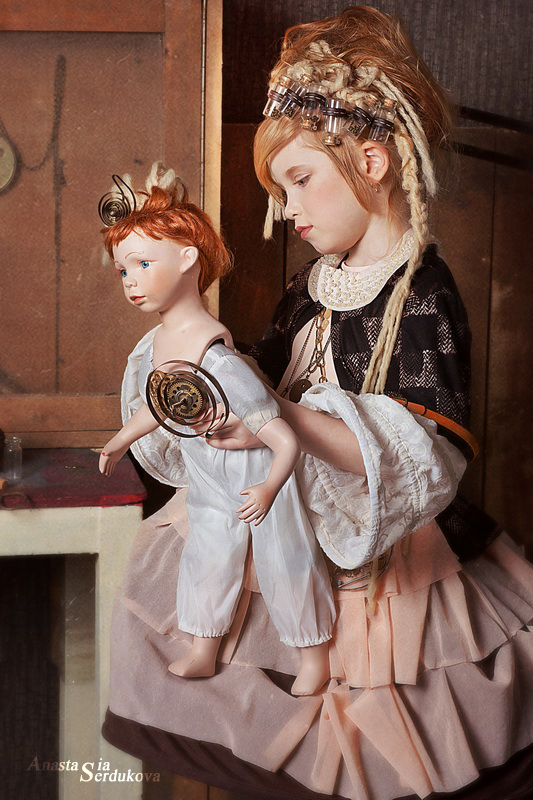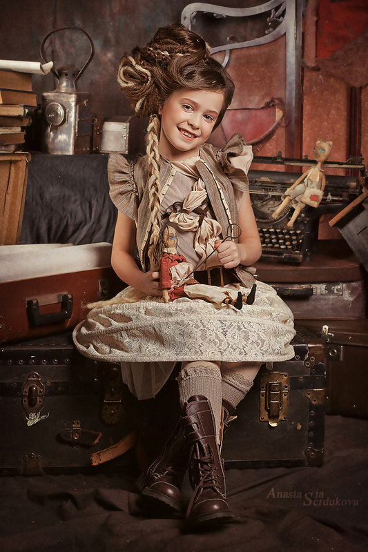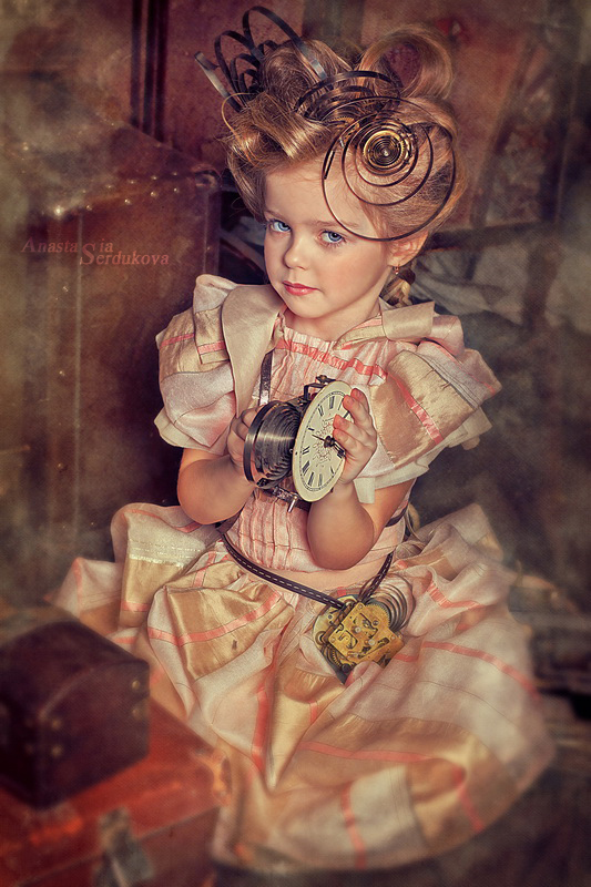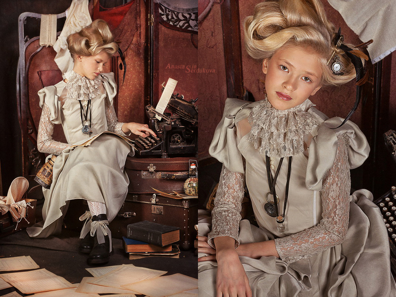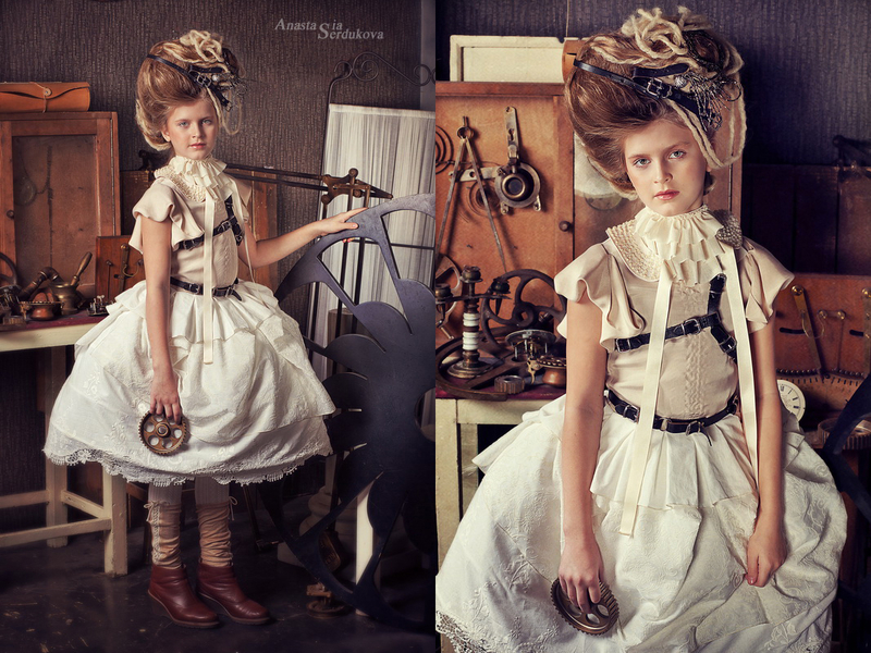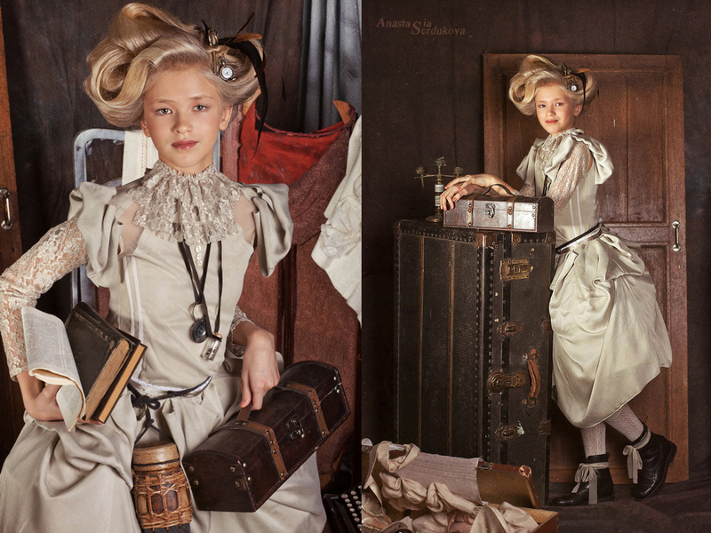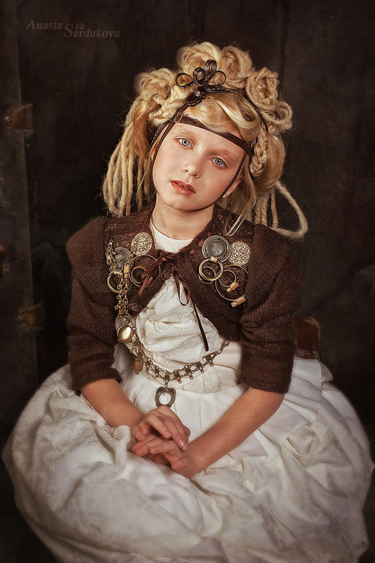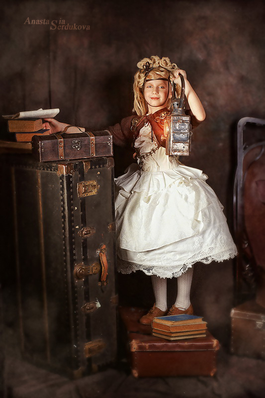 Мои волшебники: Модельер Зоя Гордеева Стиль и декорации Инна Спиридонова Отдельное спасибо за помощь в организации съемок и гостеприимство студии "Inspirata" и лично Виталию Гуляеву. И конечно же нашим потрясающим деткам, талантливым и артистичным) P.S. Стимпа?нк (или паропа?нк) — направление научной фантастики, моделирующее цивилизацию, в совершенстве освоившую механику и технологии паровых машин. Как правило, стимпанк подразумевает альтернативный вариант развития человечества с выраженной общей стилизацией под эпоху викторианской Англии (вторая половина XIX века) и эпоху раннего капитализма с характерным городским пейзажем и контрастным социальным расслоением. Возможно, однако, и наличие в произведениях стимпанка большей или меньшей доли элементов фэнтези. (буду рассказывать постепенно и в конце даже покажу вам небольшой бекстейджик)