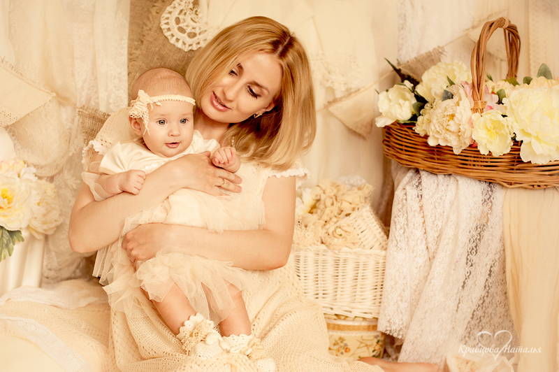 Это домашняя фотосессия для Алисы и ее мамы. малышке 3 месяца