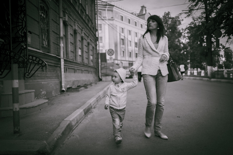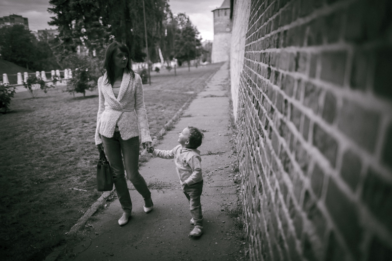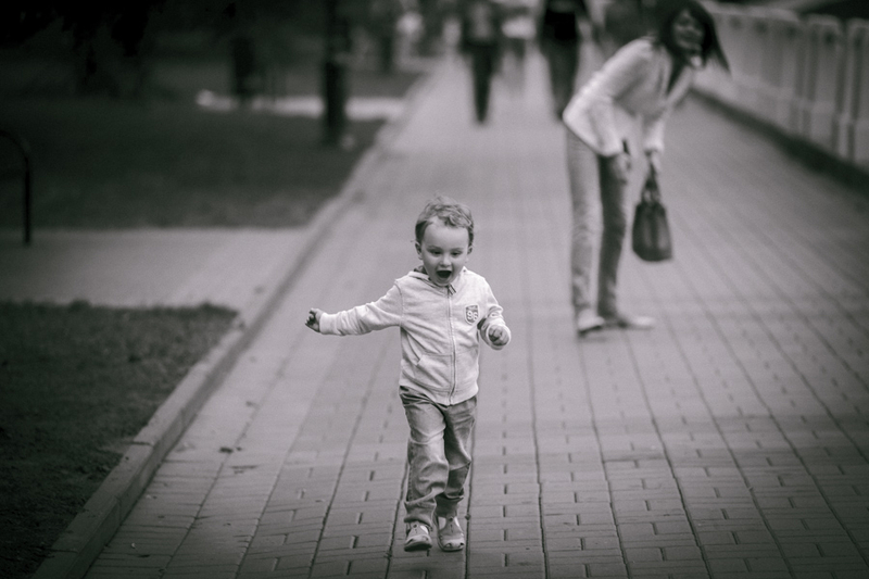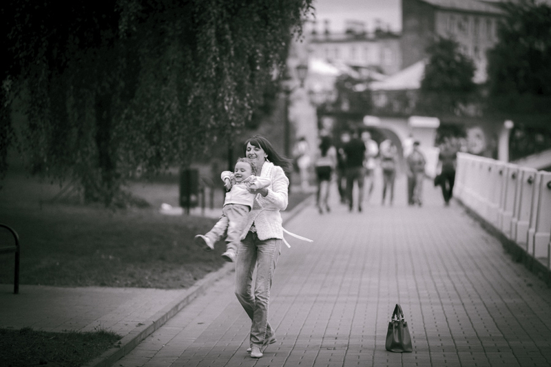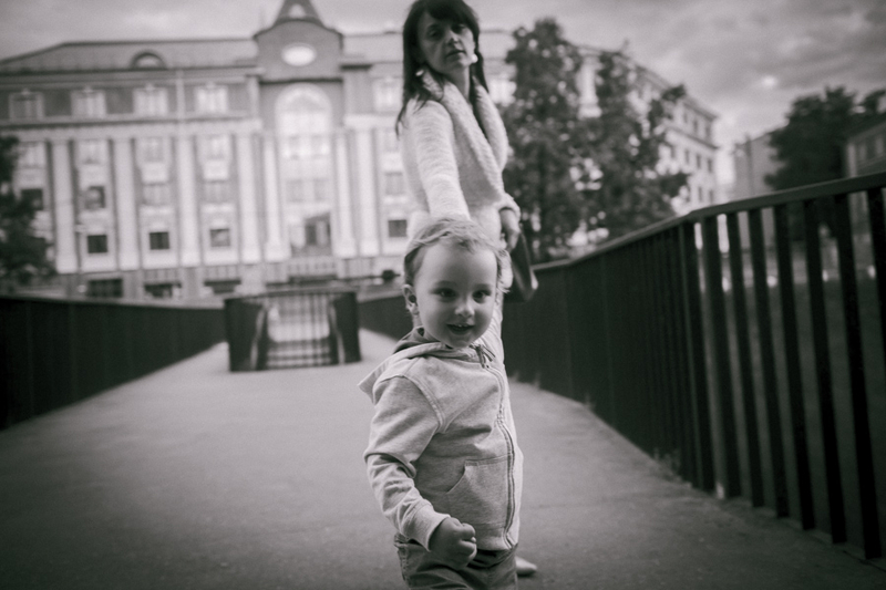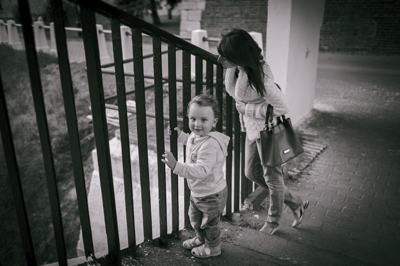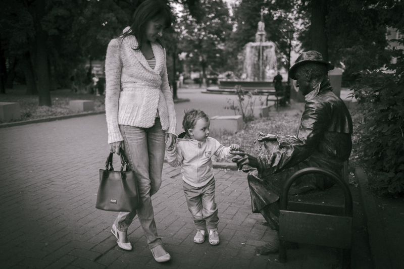 На фото моя семья, супруга и сынишка, нам три дня назад исполнилось 2 года. Обычная вечерняя прогулка, с собой на всякий случай взял аппарат и вот что получилось. Выгрузил кадры а они сами собой обработались в ЧБ, вот так меня даже не спрашивая! За последнее время пересмотрел так много фото в классическом стиле ДИСФО, что цвет просто перестал восприниматься. Не знаю что со мной, готов услышать наставления на путь истинный :)