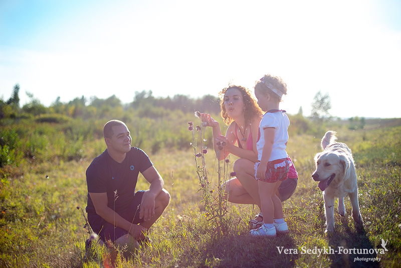 В последний день уже прошедшего лета одна моя давно знакомая семья попросила поснимать их на природе. Им нужен был снимок,который отражал бы их как самую счастливую семью на свете))) Этот снимок пойдет для участия в корпоративном конкурсе. Честно скажу,что ехала я на съемку без особого удовольствия,так как чувствовала себя ужасно,голова раскалывалась, погода должна была вот-вот испортится. Как же я была сильно удивлена,когда я только под конец съемки осознала, что я напрочь забыла про головную боль)))В общем,вот, что у нас получилось)))