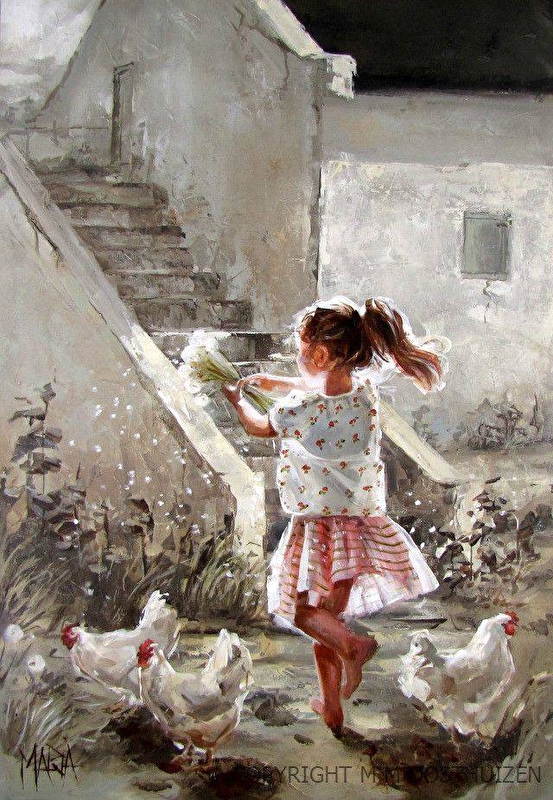 Фото с девочкой с одуванчиками мое. По первому фото автор выплатила компенсацию, убрала с сайта все товары. Я получила очень много извенений и со второго раза товар был убран с продажи. Первый раз художница не заметила, что репродукции картины продолжают продаваться. На мой взгляд это не порядочно.