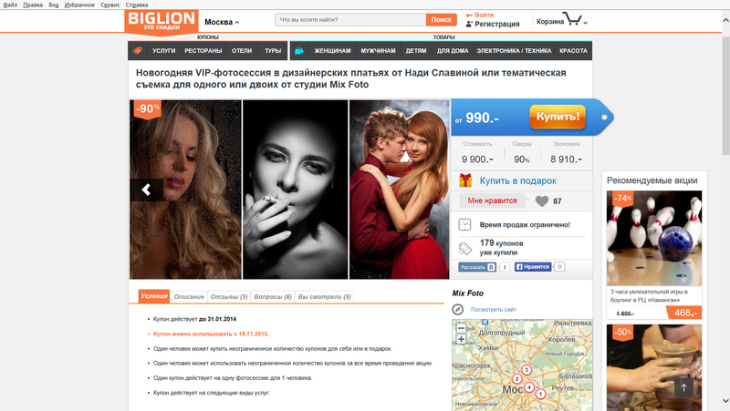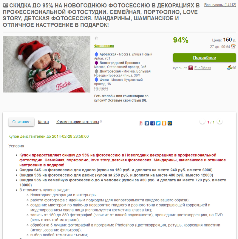 То есть вот стоит фотосессия 12 тысяч, вы делаете скидку до..4 тысяч, из них по договору обязаны отдать 50% сайту. Помимо того что вы скинули. Если сайт продает не саму фотосессии а скидочный купон - за это платите вы. Прилично - от 500 долларов с большими скидками и выше..но там и время акции сильно ограничено.