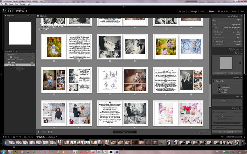Я не представляю как такое количество фото верстать в шопе. А здесь захотел - странички местами поменял, захотел - цвет поправил тут же, захотел - попробовал разные варианты раскадровки.