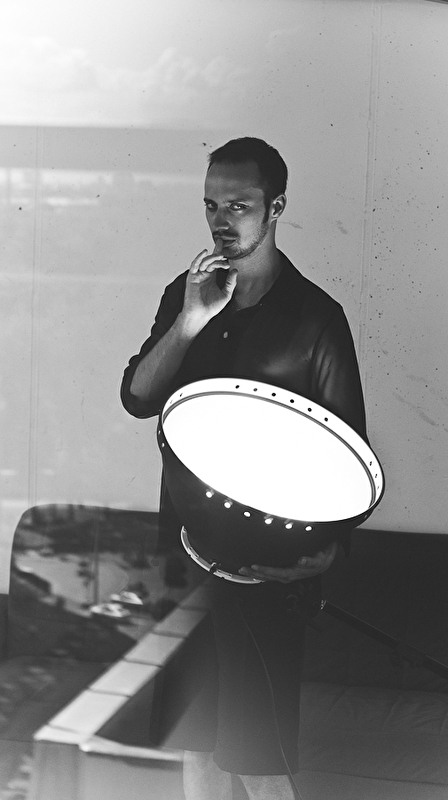 Если в лоб, то выражение глаз, жест руки, пальцы у губ, лампа, как он ее держит, сама лампа.
