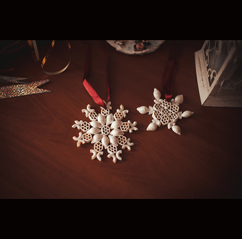 Что-то я совсем выбилась из сил в последнее время, эти гонки по вертикали, достало всё, и старшая изнылась вся. Бедолага, жалуется, что мы с ней давно вместе ничего не делали, вот и решила я забросить все свои дела на один вечер. Захотелось с ней что-нибудь смастерить новогоднее и как всегда, по закону жанра, в нужный момент под рукой необходимого материала не оказалось, зато были макароны и разных видов))) Вот, что у нас вышло)))) Конечно, идея не наша, еще пару лет назад я подсмотрела где-то в инете урок, но не в этом дело, важно то, что время мы с ней провели интересно и весело, а главное - вместе))) Надо по-чаще такие вечера устраивать, мы, родители, так нужны своим детям и всё время в этой суете забываем об этом.